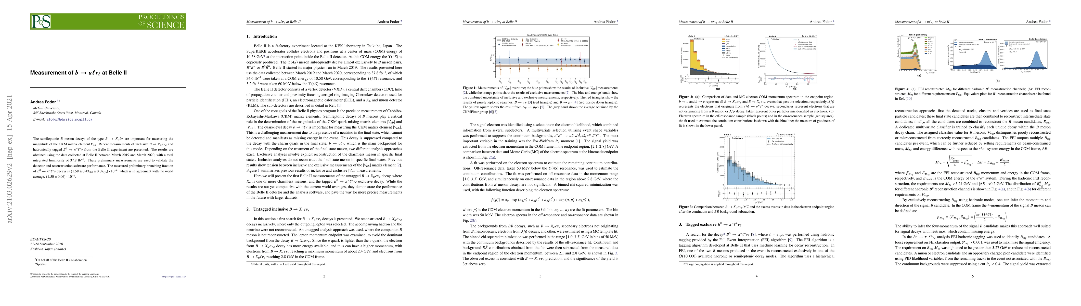 The Belle II experiment reports preliminary measurements of the semileptonic $B$ meson decays $B \to X_u \ell \nu$, focusing on $B^0 \to \pi^- \ell^+ \nu$ to determine the CKM matrix element $V_{ub}$. The measured branching fraction is $(1.58 \pm 0.43_{\textrm{stat}} \pm 0.07_{\textrm{sys}})\cdot 10^{-4}$, consistent with the world average.