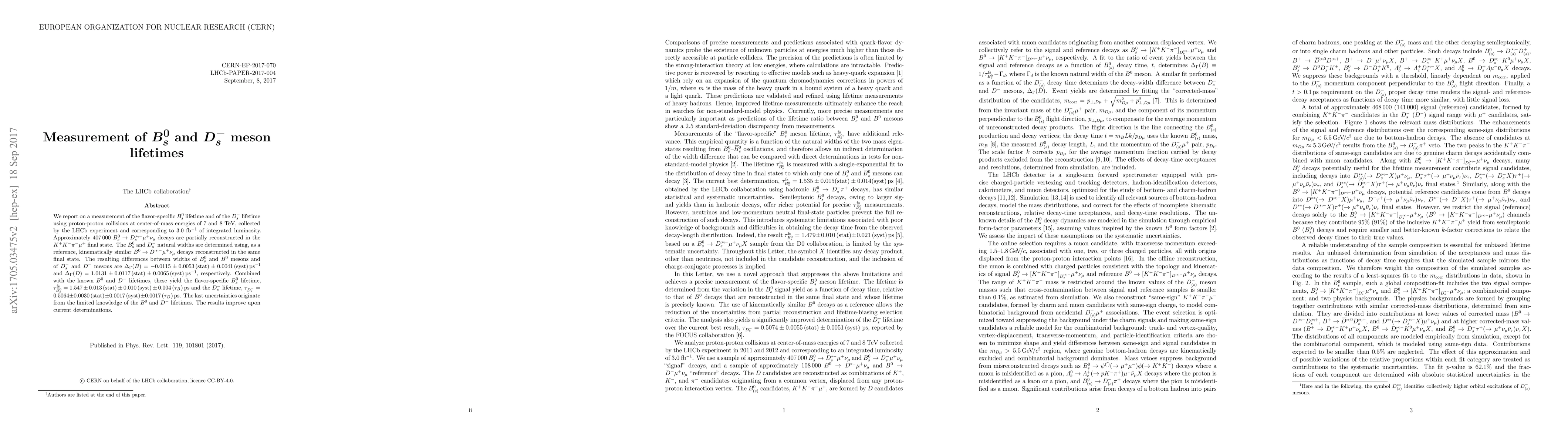 This paper reports precise measurements of the flavor-specific lifetimes of $B^{0}_{s}$ and $D^{-}_{s}$ mesons using data from LHCb at 7 and 8 TeV, yielding $\tau^{\rm fs}_{B^{0}_{s}} = 1.547 \pm 0.013$ ps and $\tau_{D^{-}_{s}} = 0.5064 \pm 0.0030$ ps, improving upon previous results.