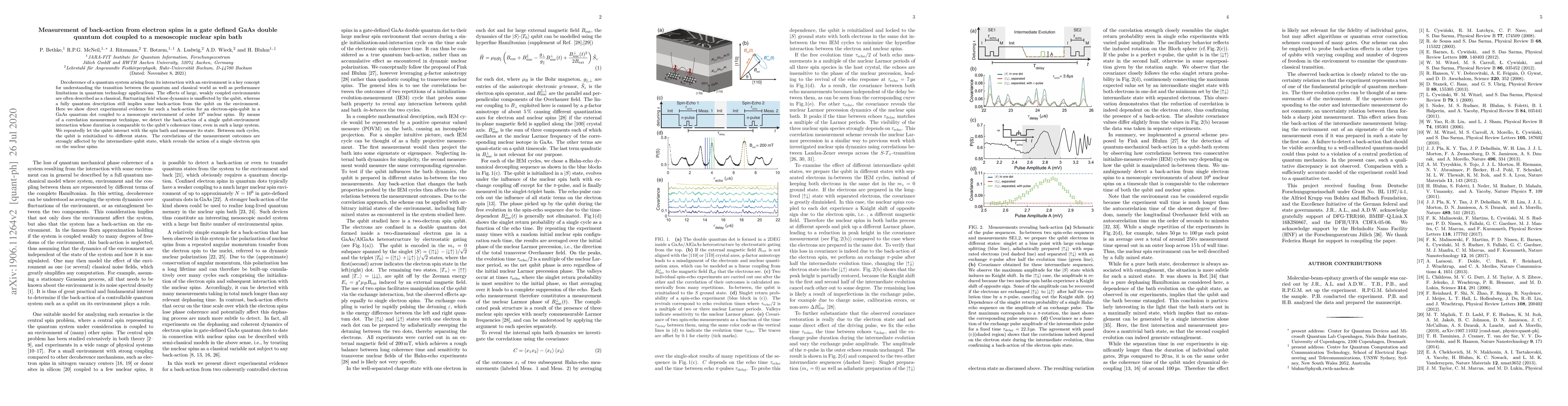 This research demonstrates direct experimental evidence of back-action from an electron spin qubit in a GaAs quantum dot interacting with a mesoscopic nuclear spin bath. The study reveals that the qubit's state influences the nuclear spins, indicating a single qubit-environment interaction despite the large number of nuclear spins.