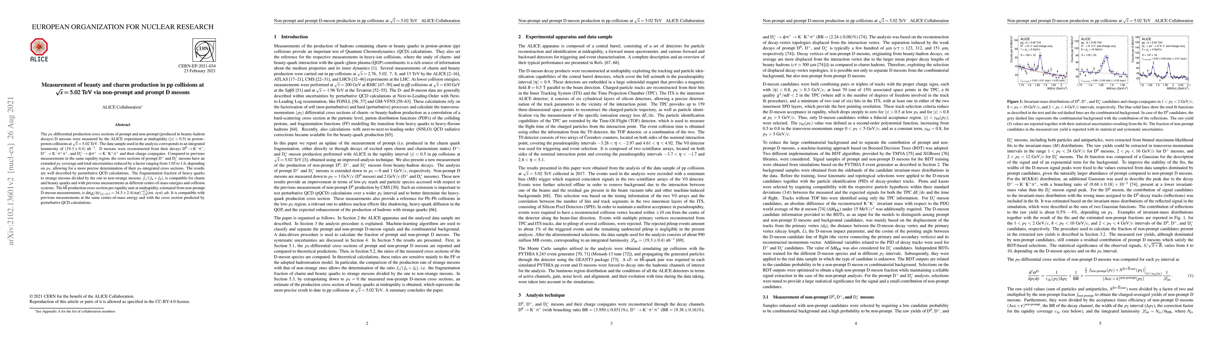 The ALICE experiment measured the $p_\mathrm{T}$-differential production cross sections of prompt and non-prompt D mesons in proton-proton collisions at $\sqrt{s}=5.02$ TeV, showing improved precision and extended $p_\mathrm{T}$ coverage. The $\mathrm{b\overline{b}}$ production cross section was estimated to be $34.5 \pm 2.4 (\mathrm{stat.}) ^{+4.7}_{-2.9} (\mathrm{tot. syst.})~\mu\mathrm{b}$, consistent with previous measurements and perturbative QCD predictions.