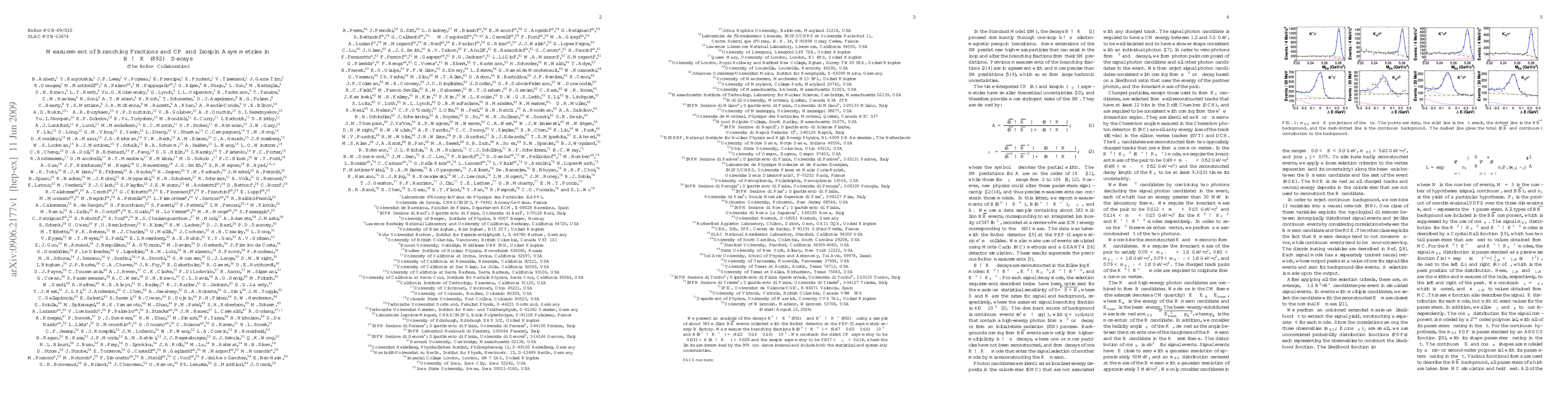 This study measures branching fractions and CP and isospin asymmetries in B decays to K*(892)γ using 383 million BBbar events from the BaBar detector. The branching fractions found are BF[B0 -> K*0 γ] = 4.47 ± 0.10 ± 0.16 x 10^-5 and BF[B+ -> K*+ γ] = 4.22 ± 0.14 ± 0.16 x 10^-5, with direct CP asymmetry constrained to -0.033 < Acp < 0.028 and isospin asymmetry to 0.017 < Δ0- < 0.116.