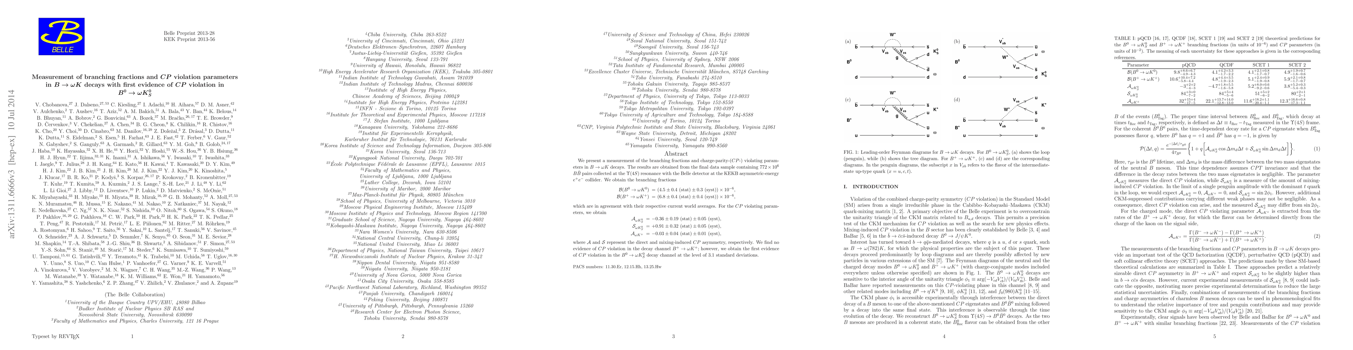 We present a measurement of the branching fractions and charge-parity-(CP-) violating parameters in B -> omega K decays. The results are obtained from the final data sample containing 772 x 10^(6) BBbar pairs collected at the Y(4S) resonance with the Belle detector at the KEKB asymmetric-energy e+e- collider. We obtain the branching fractions B(B0 -> omega K0) = (4.5 +/- 0.4 (stat) +/- 0.3 (syst)) x 10^(-6), B(B- -> omega K-) = (6.8 +/- 0.4 (stat) +/- 0.4 (syst)) x 10^(-6), which are in agreement with their respective current world averages. For the CP violating parameters, we obtain A(B0 -> omega KS) = -0.36 +/- 0.19 (stat) +/- 0.05 (syst), S(B0 -> omega KS) = +0.91 +/- 0.32 (stat) +/- 0.05 (syst), A(B- -> omega K-) = -0.03 +/- 0.04 (stat) +/- 0.01 syst), where A and S represent the direct and mixing-induced CP asymmetry, respectively. We find no evidence of CP violation in the decay channel B-->omega K-; however, we obtain the first evidence of CP violation in the B0 -> omega KS decay channel at the level of 3.1 standard deviations.
