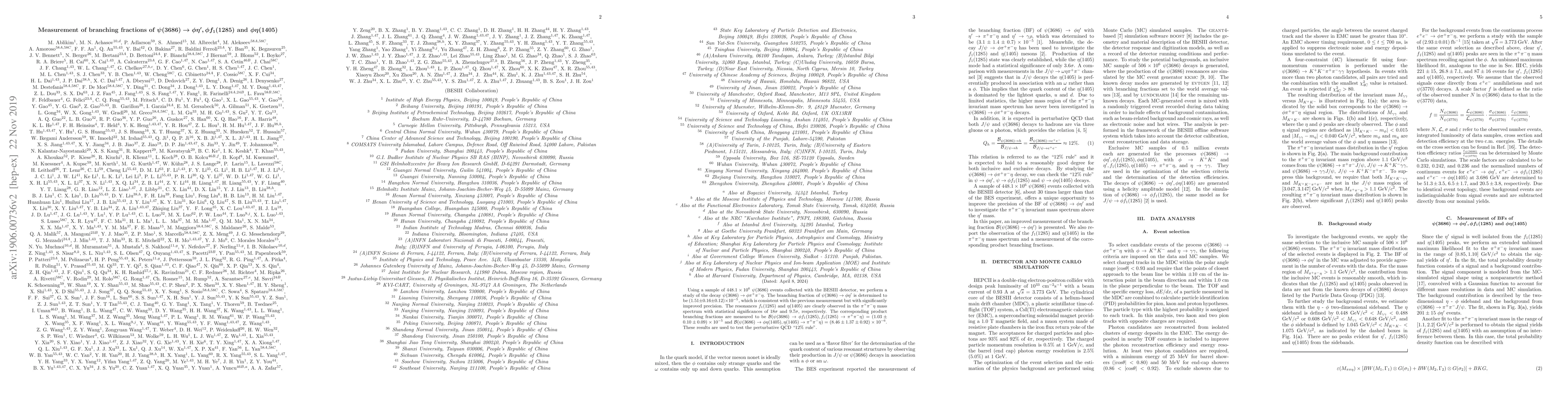 This study, using BESIII data from $448.1\times10^6$ $\psi(3686)$ events, measures the branching fractions for $\psi(3686)\rightarrow\phi\eta^\prime$ and $\phi$ decaying into $\pi^{+}\pi^{-}\eta$, with improved precision. It also observes $f_{1}(1285)$ and $\eta(1405)$ resonances.