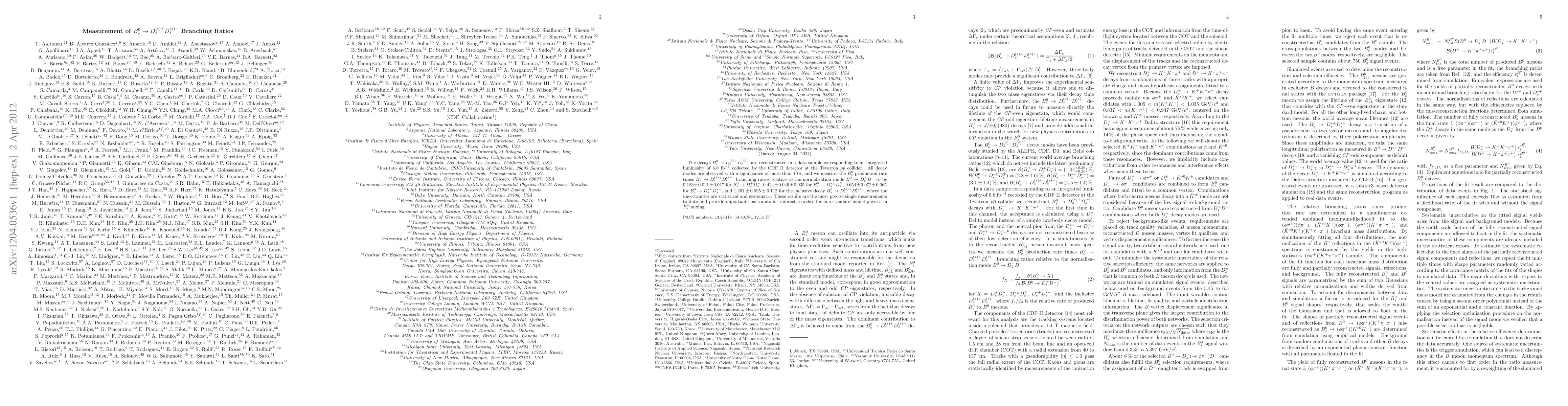 This study measures the branching ratios for Bs0 meson decays into various Ds(*) pairs, observing all decay modes with high significance. The results provide the most precise single measurements to date, crucial for constraining indirect searches for non-standard model physics in Bs0 mixing.