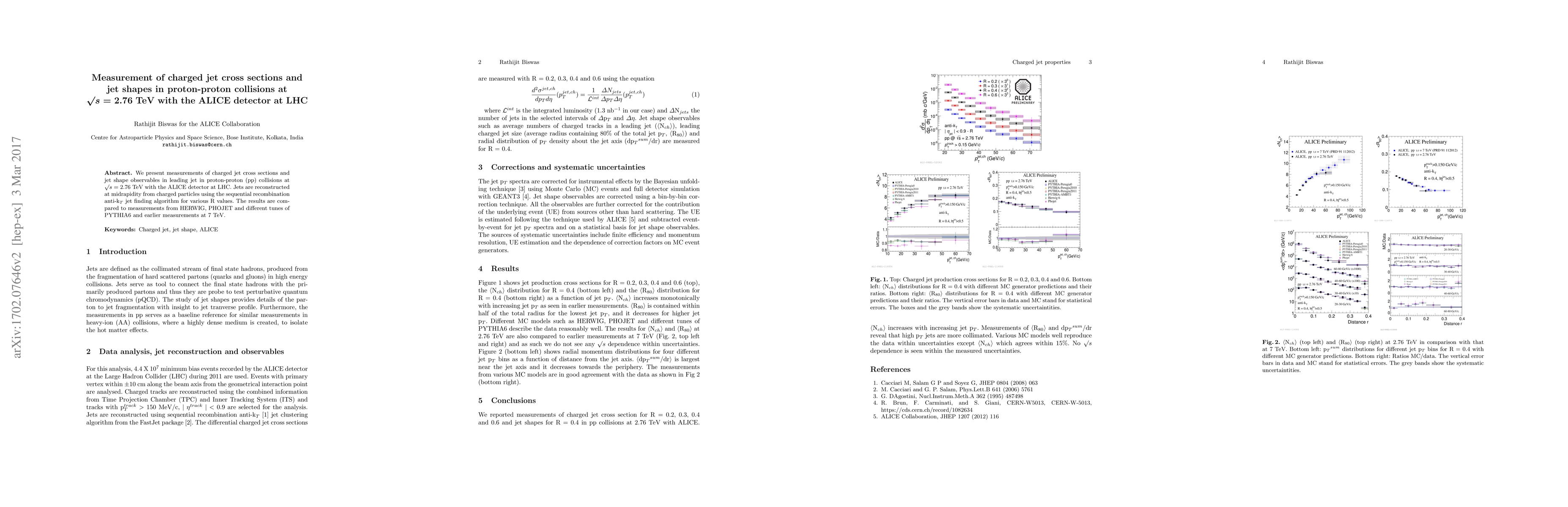 This paper reports on measurements of charged jet cross sections and jet shapes in proton-proton collisions at 2.76 TeV using the ALICE detector at the LHC. The study employs the sequential recombination anti-kT algorithm and compares the results to theoretical predictions from HERWIG, PHOJET, and PYTHIA6.