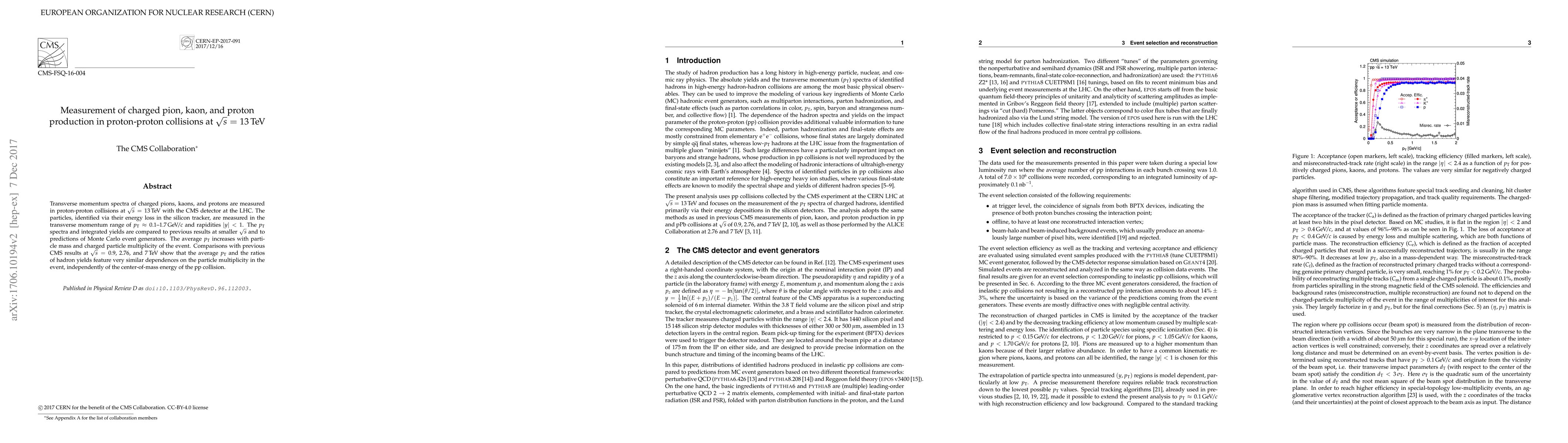 The paper presents detailed measurements and comparisons of charged hadron transverse momentum spectra and yields in pp collisions at 13 TeV, using advanced tracking and identification techniques with the CMS detector.