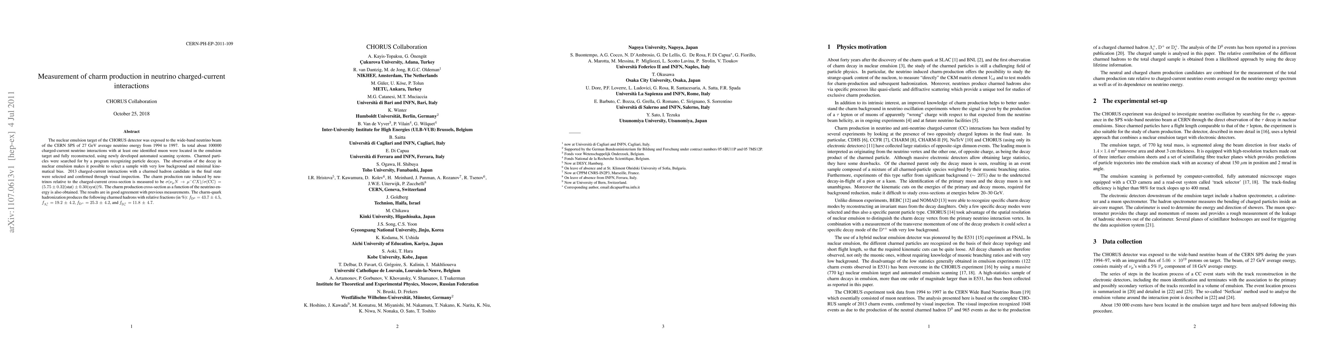 The CHORUS detector measured charm production in neutrino charged-current interactions using a nuclear emulsion target exposed to a 27 GeV wide-band neutrino beam from CERN SPS. The study found a charm production rate of (5.75 ± 0.32 stat ± 0.30 syst)% relative to the charged-current cross-section, with good agreement to previous measurements.