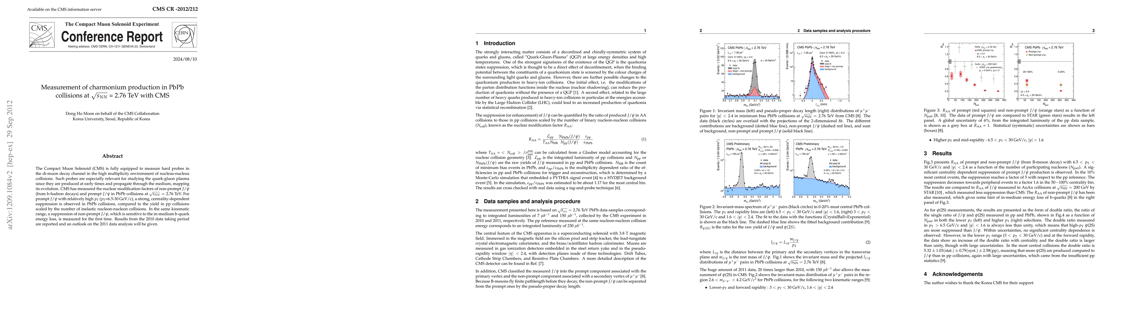 The CMS experiment measures charmonium production in PbPb collisions at 2.76 TeV, observing significant suppression of both prompt and non-prompt J/psi mesons relative to pp collisions, indicating effects of the quark-gluon plasma. Initial results from 2010 data show suppression dependent on collision centrality, with further analysis planned for 2011 data including Psi(2S) measurements.