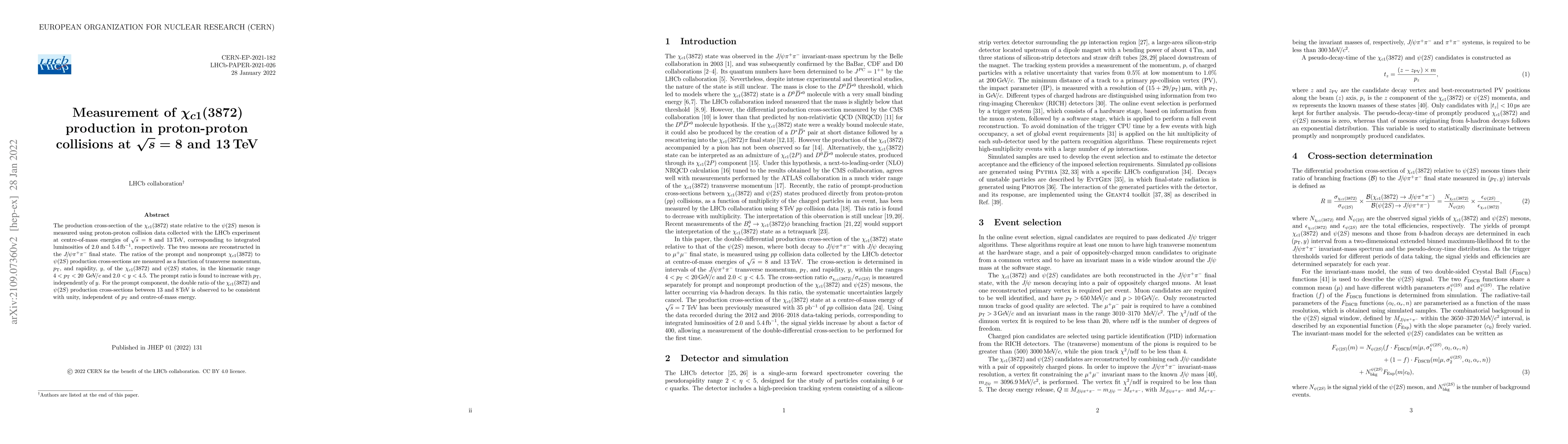 Researchers measured the production cross-section of $ uant{c1}(3872)$ at LHCb with two different energies, finding that its ratio to $ uant{2S}$ increases with transverse momentum independently of rapidity.