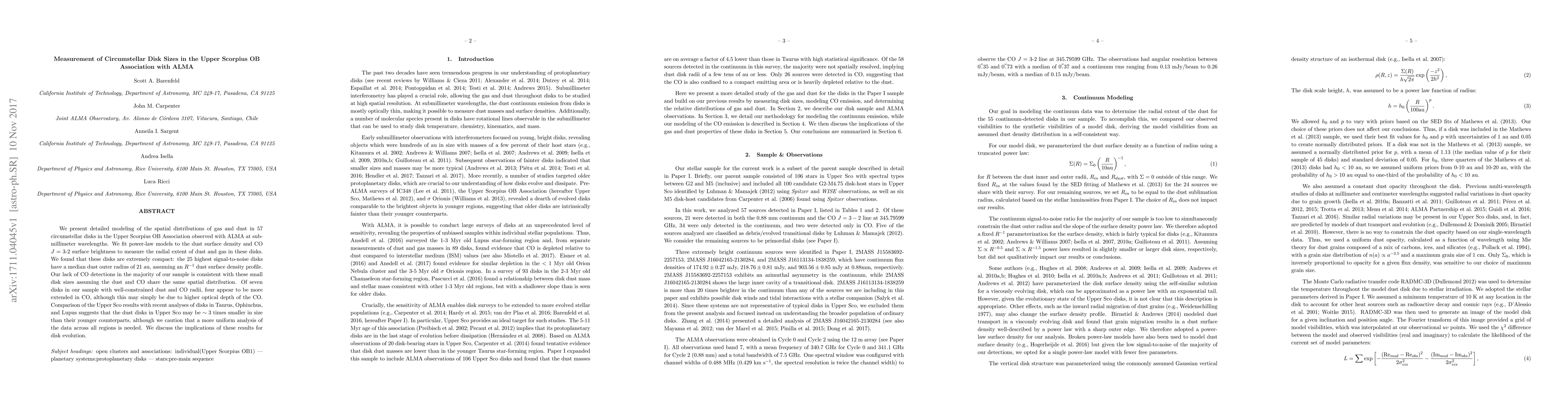 This study uses ALMA to model the gas and dust in 57 circumstellar disks in the Upper Scorpius OB Association, finding them to be compact with median dust outer radii of 21 au. The small sizes suggest a possible evolutionary trend where Upper Sco disks are about three times smaller than those in younger regions like Taurus, though more comprehensive data analysis is needed.