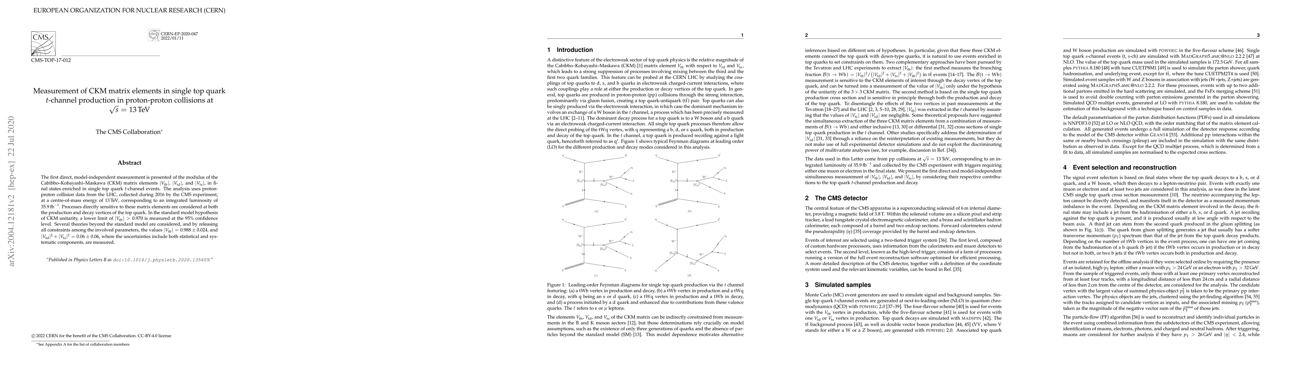 Researchers at CMS measured the CKM matrix elements |Vtb|, |Vtd|, and |Vts| in proton-proton collisions, setting a lower limit for |Vtb| and measuring |Vtb|=0.988 with an uncertainty of 0.024.