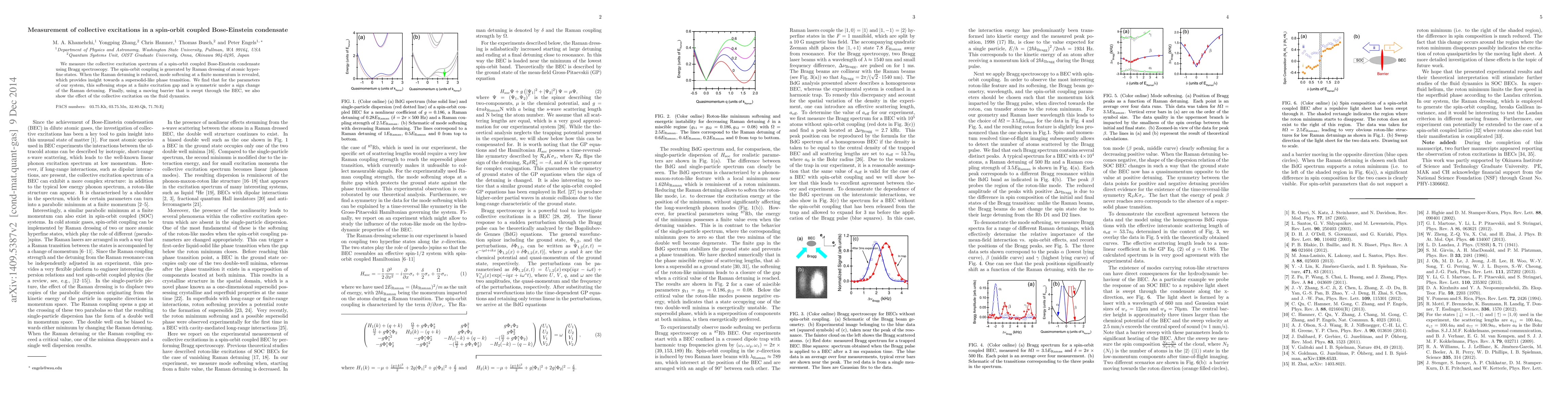 Development of a Bragg spectroscopy technique to measure collective excitations in spin-orbit coupled BECs, revealing mode softening and its implications for supersolid-like phase transitions.