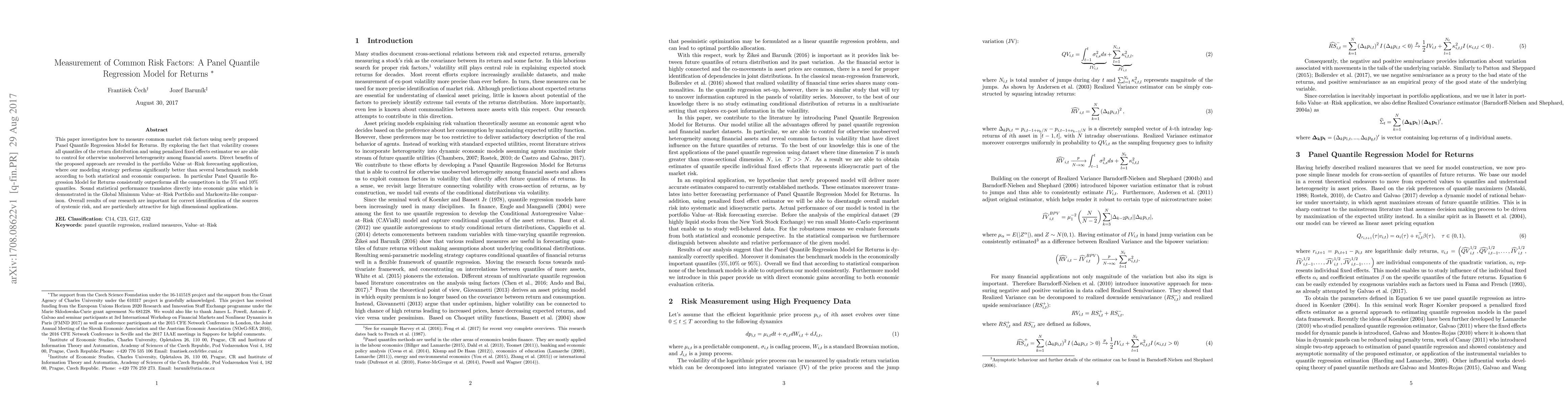 This paper investigates how to measure common market risk factors using newly proposed Panel Quantile Regression Model for Returns. By exploring the fact that volatility crosses all quantiles of the return distribution and using penalized fixed effects estimator we are able to control for otherwise unobserved heterogeneity among financial assets. Direct benefits of the proposed approach are revealed in the portfolio Value-at-Risk forecasting application, where our modeling strategy performs significantly better than several benchmark models according to both statistical and economic comparison. In particular Panel Quantile Regression Model for Returns consistently outperforms all the competitors in the 5\% and 10\% quantiles. Sound statistical performance translates directly into economic gains which is demonstrated in the Global Minimum Value-at-Risk Portfolio and Markowitz-like comparison. Overall results of our research are important for correct identification of the sources of systemic risk, and are particularly attractive for high dimensional applications.