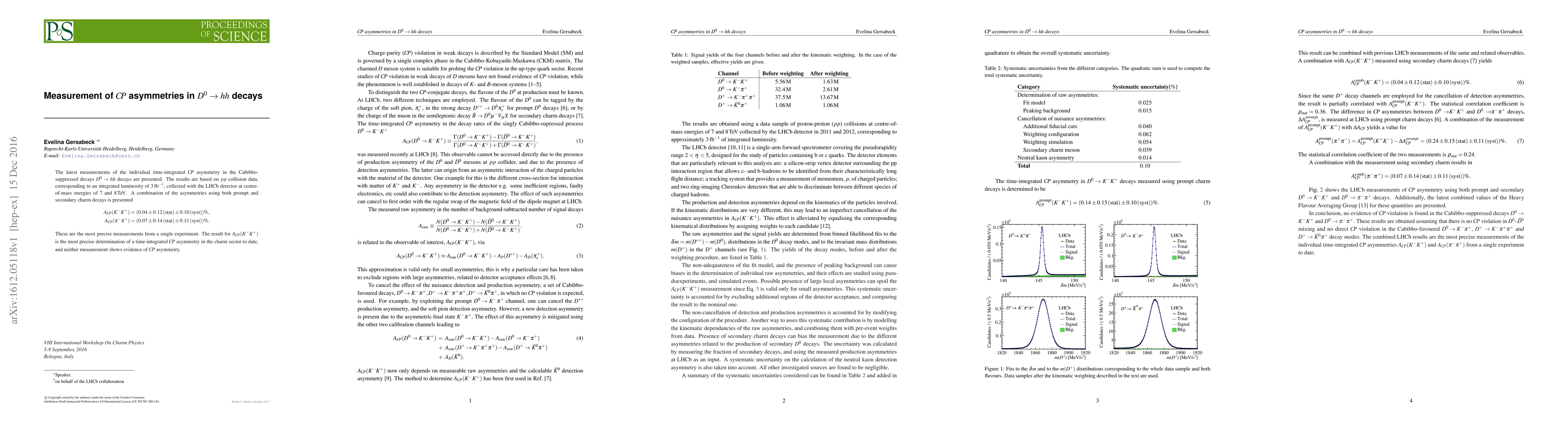 The paper reports precise measurements of CP asymmetries in D^0 -> hh decays, with neither result showing evidence of CP violation, providing the most accurate determinations to date.