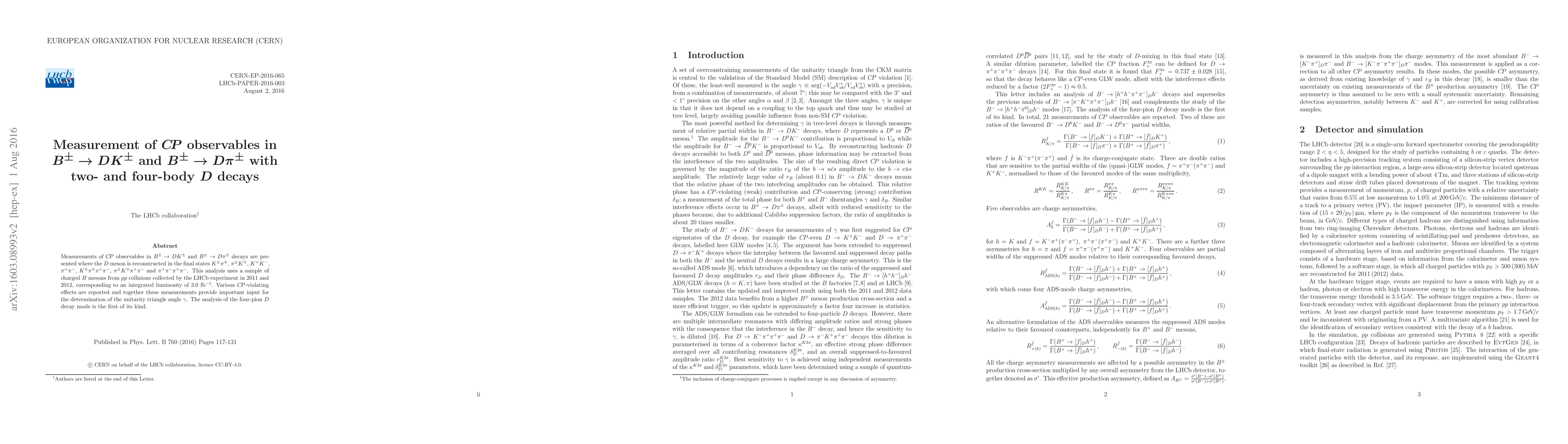 This paper reports measurements of $C\!P$ observables in $B^\pm$ decays to $D K^\pm$ and $D \pi^\pm$ with $D$ mesons reconstructed in various two- and four-body final states. The analysis uses data from LHCb experiment, providing new insights into $C\!P$ violation and contributing to the determination of the unitarity triangle angle $\gamma$, including the first study of the four-pion $D$ decay mode.