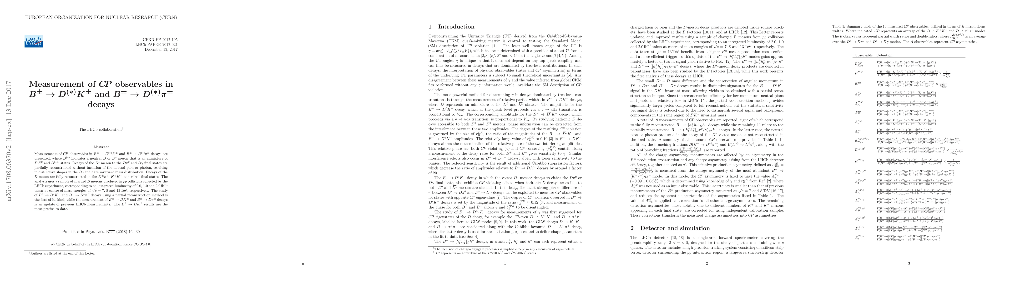 Research paper measures CP observables in B decay to D meson with unique partial reconstruction method, providing precise results for B decay to D pi and K combinations.
