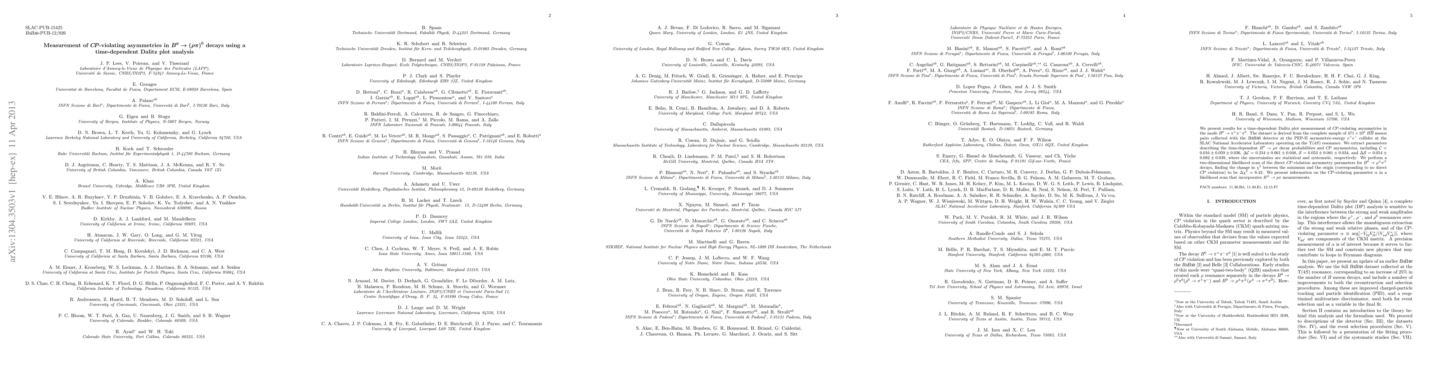 This paper reports a time-dependent Dalitz plot analysis of B^0 -> pi^+ pi^- pi^0 decays, measuring CP-violating asymmetries using data from the BABAR detector. The study finds parameters C, DeltaC, S, and DeltaS with associated uncertainties, and a significant chi^2 change indicating direct CP violation.