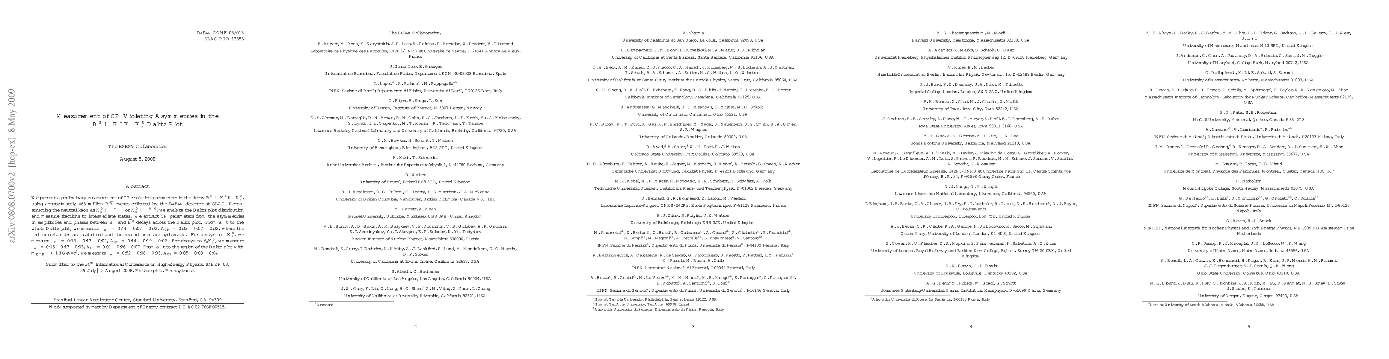 The paper presents an advanced analysis technique for measuring CP-violating asymmetries in B meson decays using a Dalitz plot approach, providing detailed descriptions of event reconstruction, background suppression, and fit methodologies.