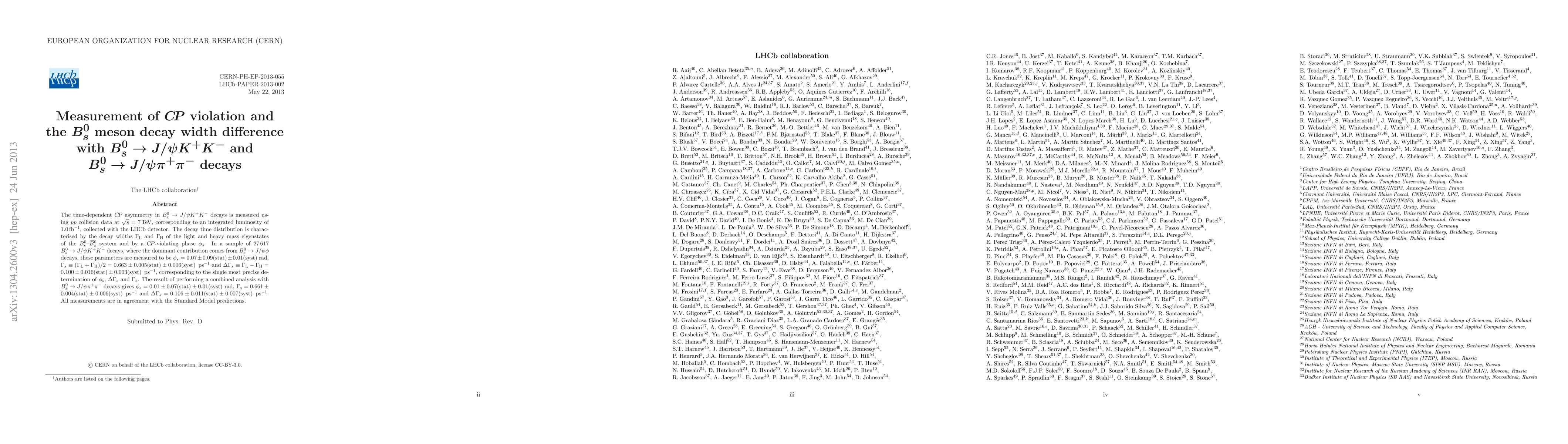 This paper measures CP violation and the B_s^0 meson decay width difference using B_s^0 decays into J/\psi K^+K^- and J/\psi\pi^+\pi^- in LHCb data. The results provide the most precise determination of the CP-violating phase, decay widths, and width difference, all consistent with Standard Model predictions.