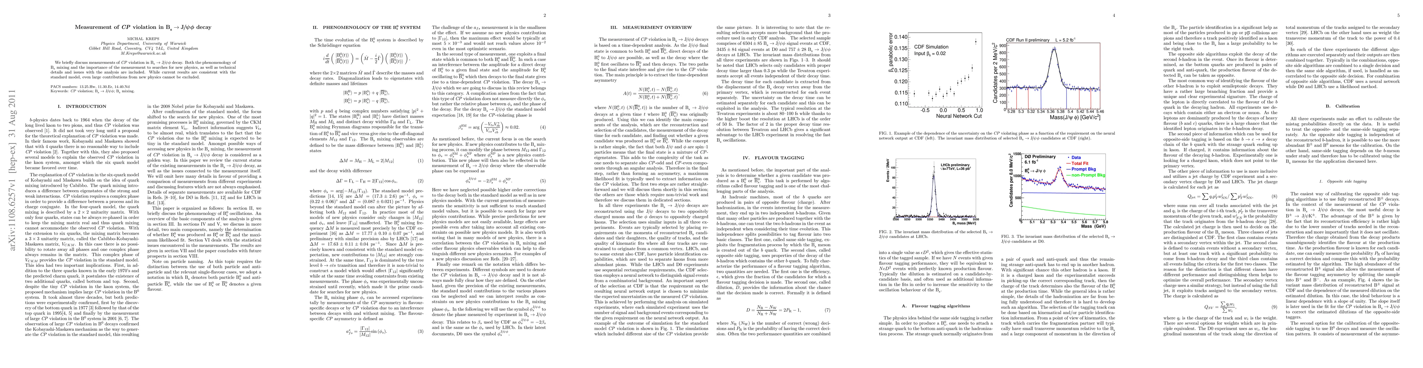 We briefly discuss measurements of CP violation in Bs --> J/psi phi decay. Both the phenomenology of Bs mixing and the importance of the measurement to searches for new physics, as well as technical details and issues with the analysis are included. While current results are consistent with the standard model, even large contributions from new physics cannot be excluded.