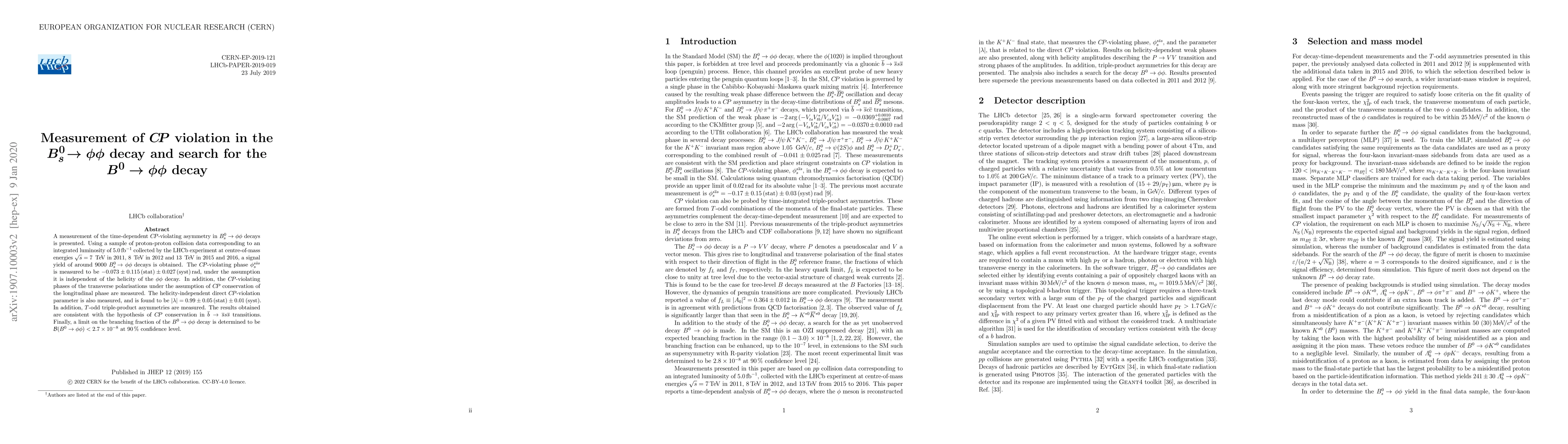 This paper reports a measurement of CP-violating asymmetry in $B_s^0\rightarrow\phi\phi$ decays using LHCb data, finding a CP-violating phase $\phi_s^{s\bar{s}s}$ of $-0.073 \pm 0.115$(stat)$\pm 0.027$(syst) rad, consistent with CP conservation. Additionally, a limit on the branching fraction of $B^0\rightarrow \phi\phi$ decay is set at $\mathcal{B}(B^0\rightarrow \phi\phi)<2.7\times 10^{-8}$ at 90% confidence level.