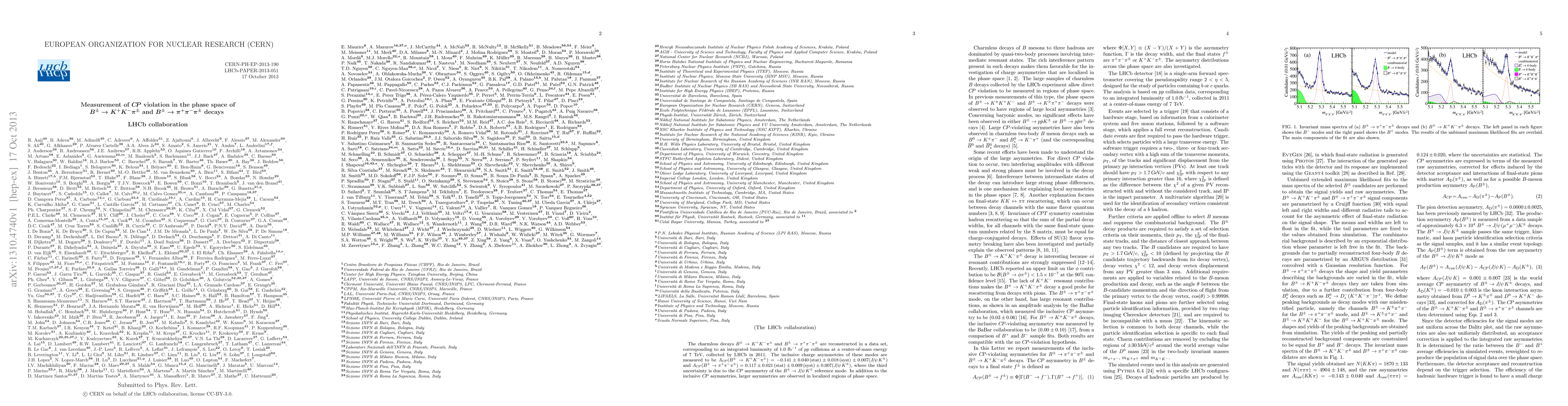 This study measures CP violation in charmless $B^{\pm}$ decays to $K^{+}K^{-}\pi^{\pm}$ and $\pi^{+}\pi^{-}\pi^{\pm}$ using LHCb data from 2011, finding $A_{CP}$ values of $-0.141 \pm 0.040$ and $0.117 \pm 0.021$ respectively, with notable asymmetries in specific phase space regions.