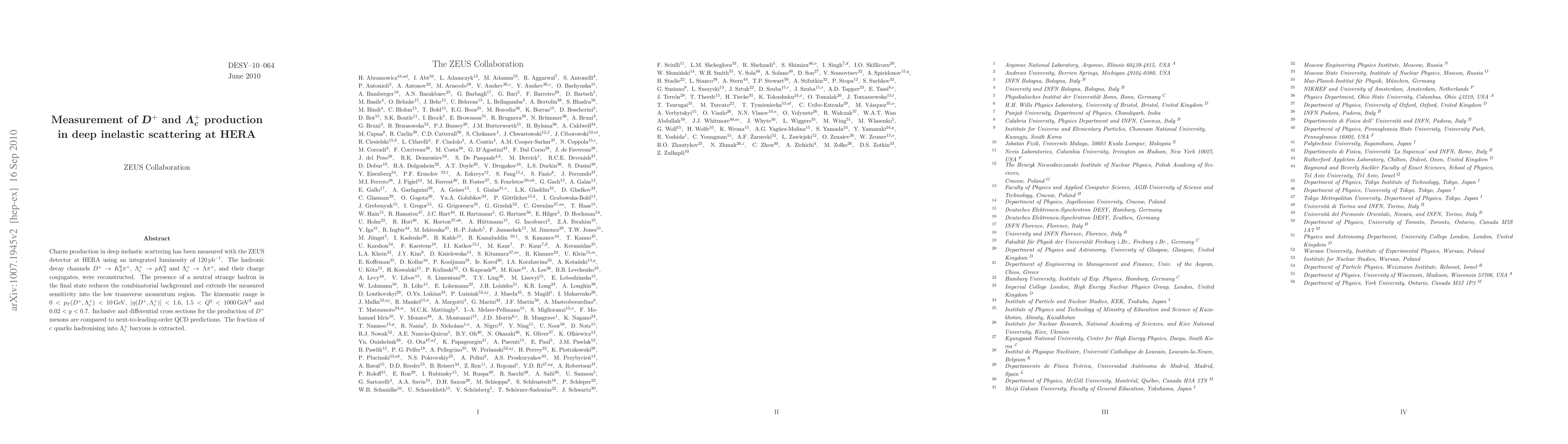 Researchers at ZEUS detected charm production in deep inelastic scattering at HERA, measuring D+ and Lambda_c+ mesons with a high precision, and compared their cross sections to QCD predictions.