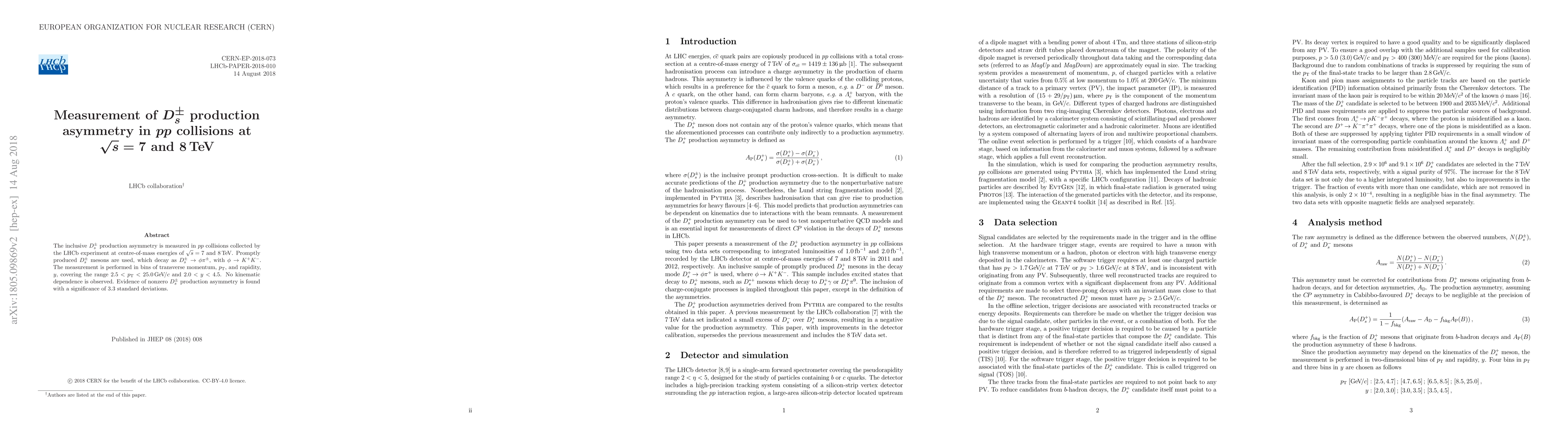 and 8 TeV. Promptly produced $D_s^{\pm}$ mesons are used, which decay as