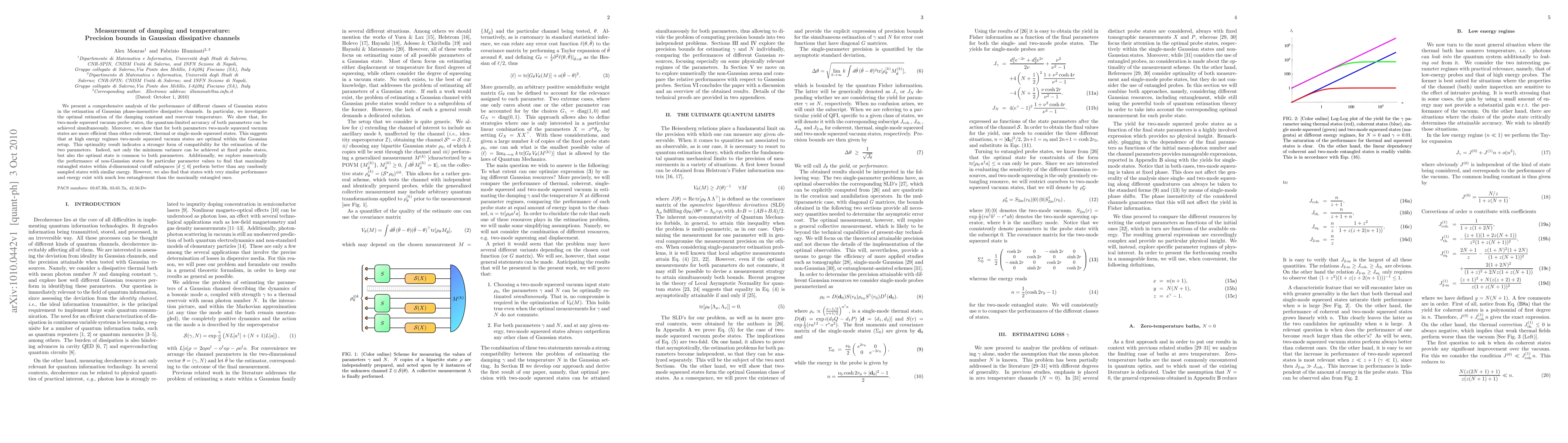 This paper investigates the optimal estimation of damping constants and reservoir temperatures in Gaussian dissipative channels using various Gaussian states, finding that two-mode squeezed vacuum states achieve quantum-limited accuracy. It also explores non-Gaussian states, revealing that maximally entangled states perform better but less entangled states with similar energy exist.