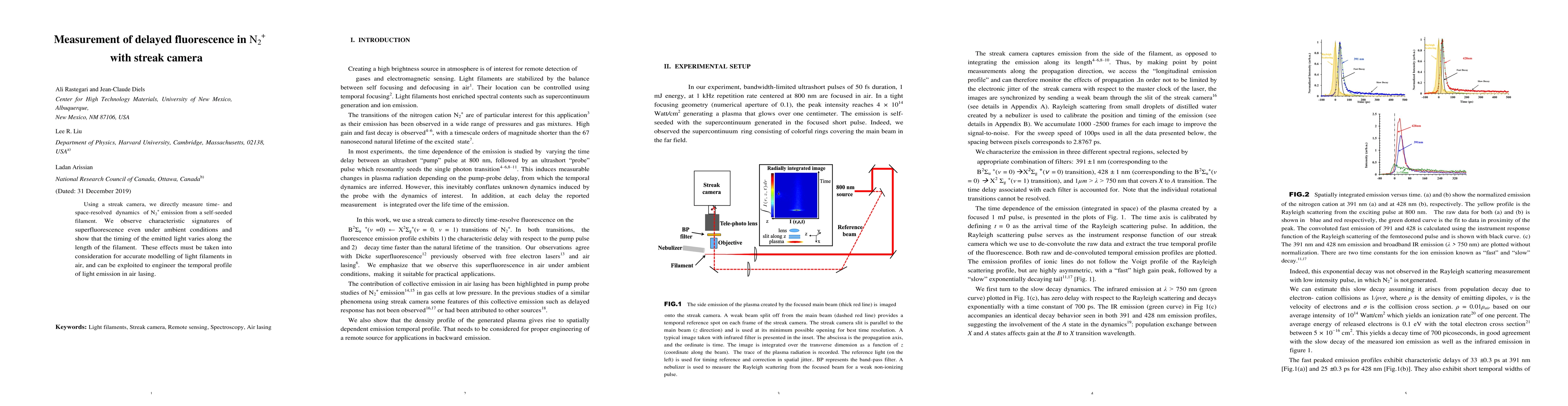This study employs a streak camera to measure the time- and space-resolved dynamics of N2+ emission from a self-seeded filament, revealing signatures of superfluorescence under ambient conditions and demonstrating variations in emitted light timing along the filament length. These findings are crucial for accurate modeling of air light filaments and for engineering the temporal profile of light emission in air lasing.