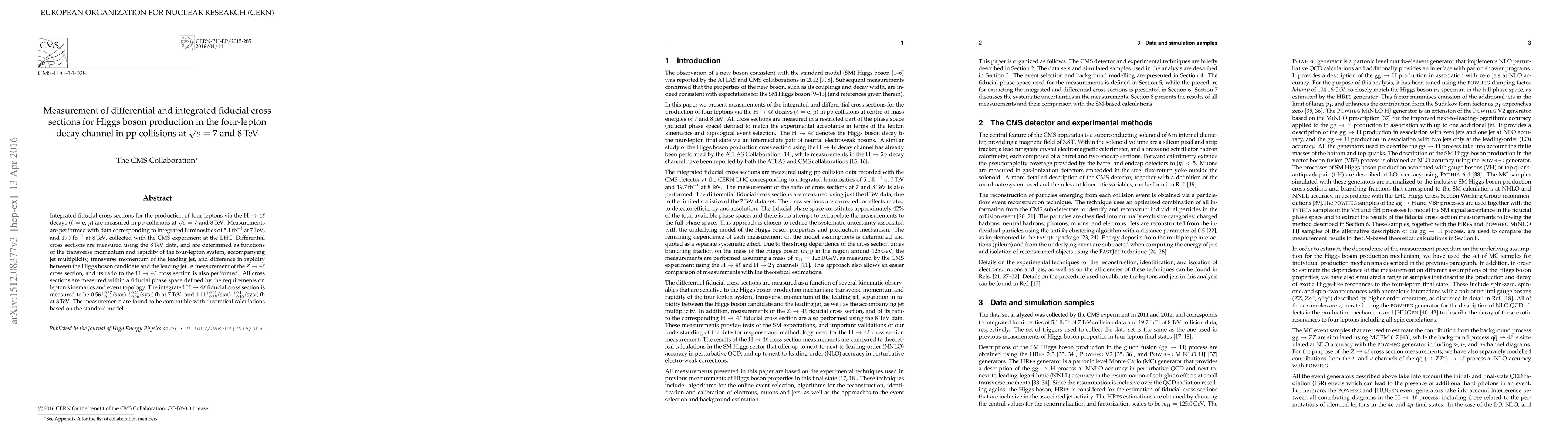 This paper measures integrated and differential fiducial cross sections for Higgs boson production in the four-lepton decay channel in proton-proton collisions at 7 and 8 TeV. The CMS experiment at the LHC collected data corresponding to 5.1 and 19.7 inverse femtobarns at these energies, respectively, and found the integrated cross sections to be 0.56 fb at 7 TeV and 1.11 fb at 8 TeV, consistent with standard model predictions.