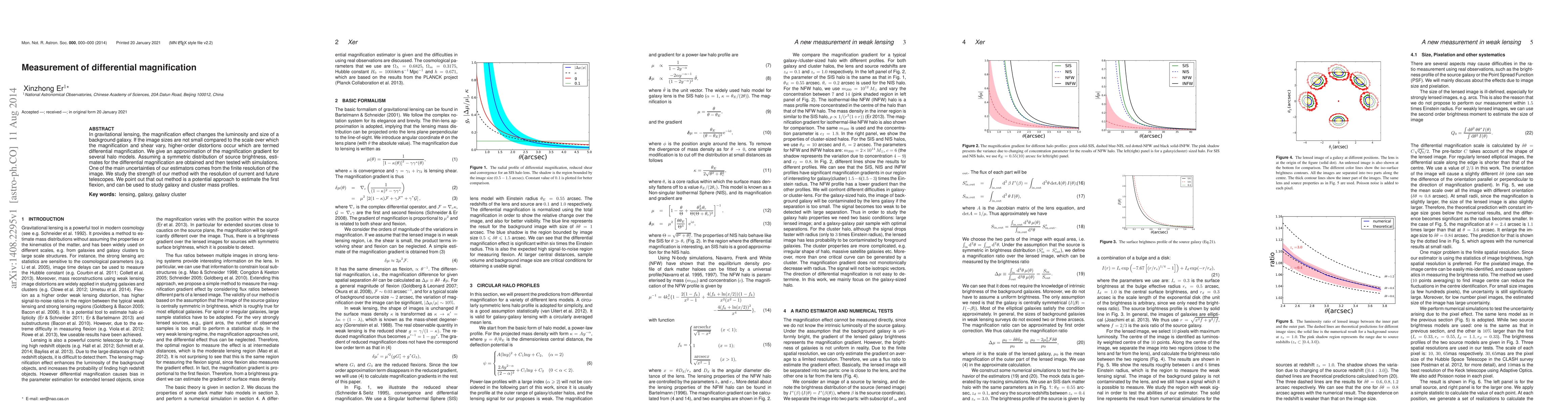 This paper measures differential magnification in gravitational lensing, detailing an approximation of the magnification gradient for various halo models. It assesses the method's robustness against finite resolution and suggests its utility for estimating first flexion and studying galaxy and cluster mass profiles.