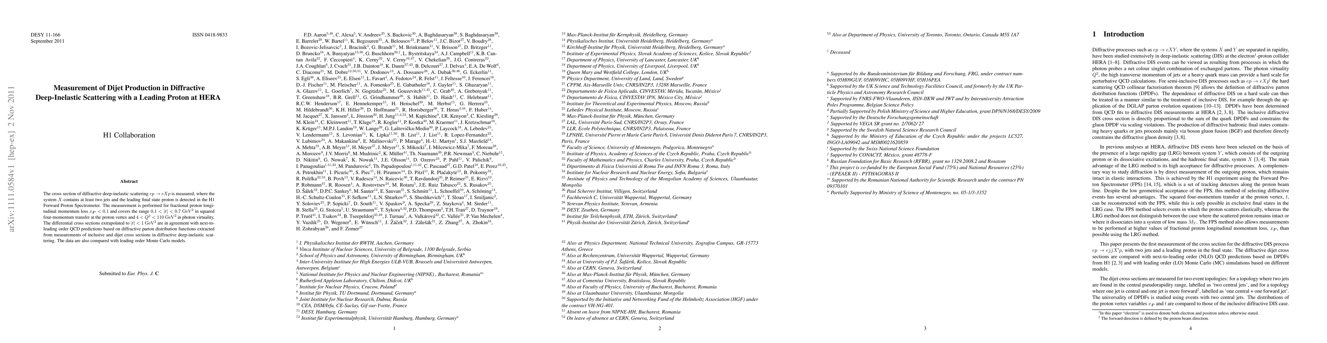 This paper measures the cross section for diffractive deep-inelastic scattering with at least two jets and a detected leading proton, finding agreement with next-to-leading order QCD predictions and comparisons to leading order Monte Carlo models. The study covers specific ranges of proton momentum loss and four-momentum transfer.