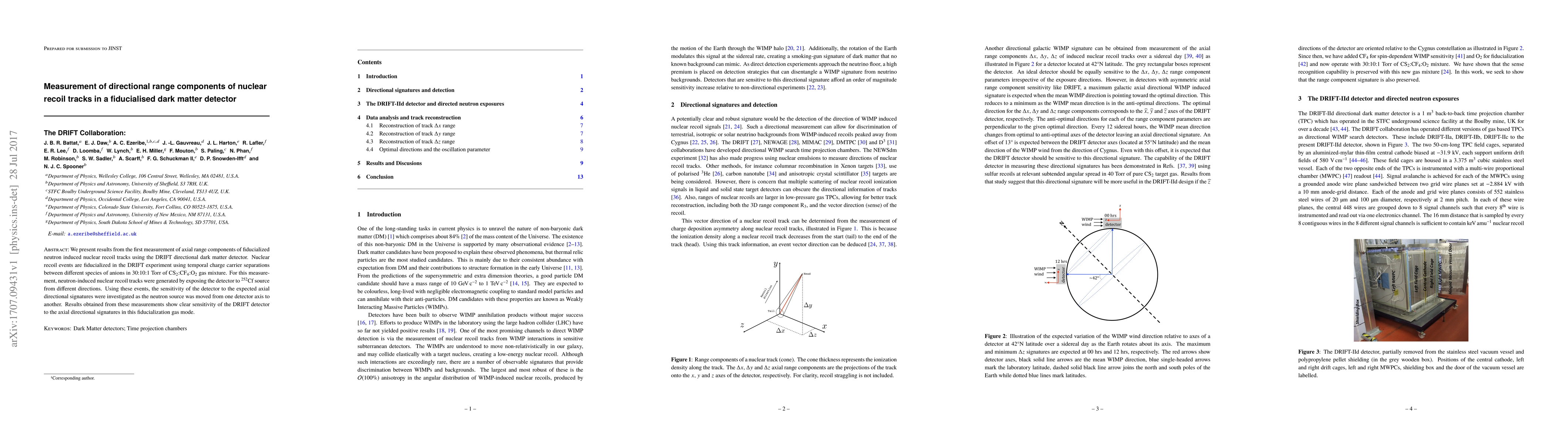 This paper reports the first measurement of axial directional range components of neutron-induced nuclear recoil tracks in the DRIFT detector using a gas mixture of CS$_2$:CF$_4$:O$_2$. The study demonstrates the detector's sensitivity to the expected axial directional signatures by exposing it to a $^{252}$Cf source.