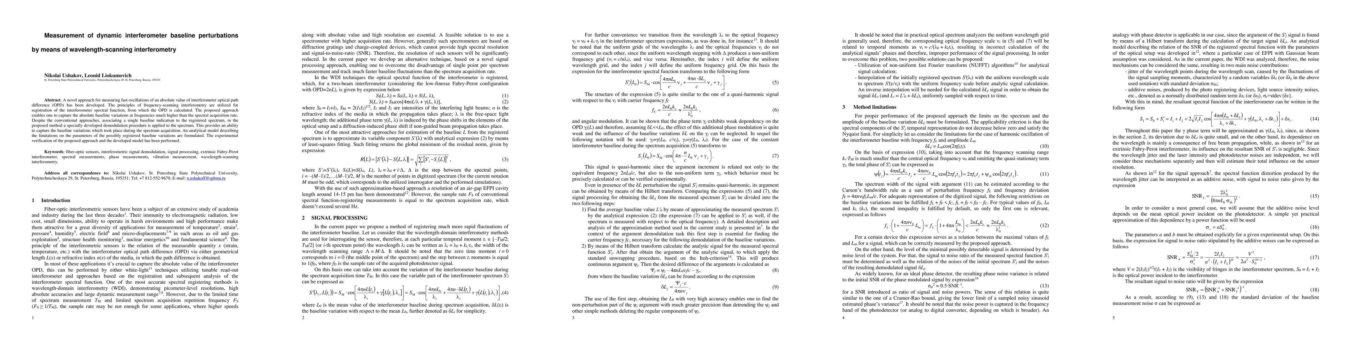 A novel approach for measuring fast oscillations of an absolute value of interferometer optical path difference (OPD) has been developed. The principles of frequency-scanning interferometry are utilized for registration of the interferometer spectral function, from which the OPD is calculated. The proposed approach enables one to capture the absolute baseline variations at frequencies much higher than the spectral acquisition rate. Despite the conventional approaches, associating a single baseline indication to the registered spectrum, in the proposed method a specially developed demodulation procedure is applied to the spectrum. This provides an ability to capture the baseline variations which took place during the spectrum acquisition. An analytical model describing the limitations on the parameters of the possibly registered baseline variations are formulated. The experimental verification of the proposed approach and the developed model has been performed.