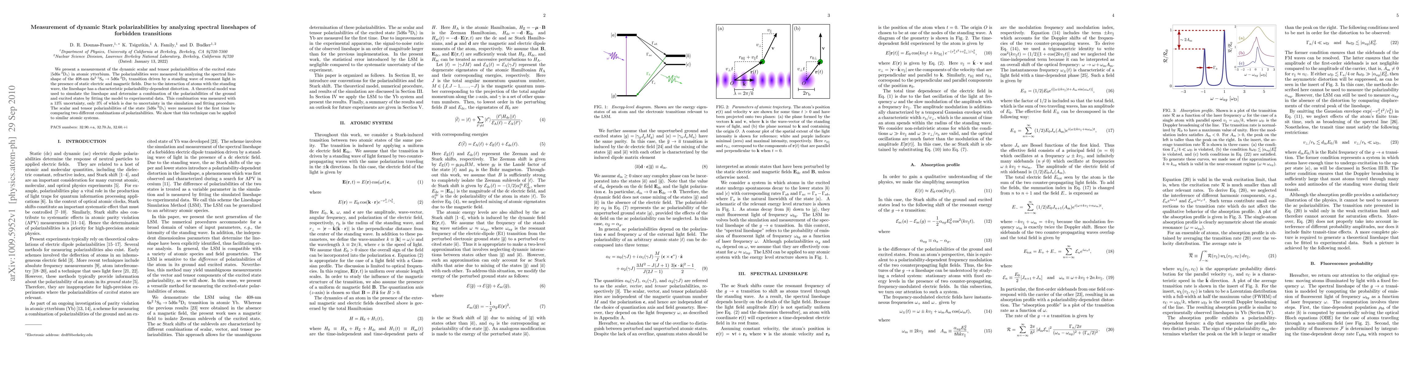 This paper measures the dynamic scalar and tensor polarizabilities of the excited 3D1 state in ytterbium by analyzing the spectral lineshape of the 408-nm 1S0->3D1 transition under resonant light and static fields. The technique yields a combination of ground and excited state polarizabilities with a 13% uncertainty, demonstrating a novel method for similar atomic systems.
