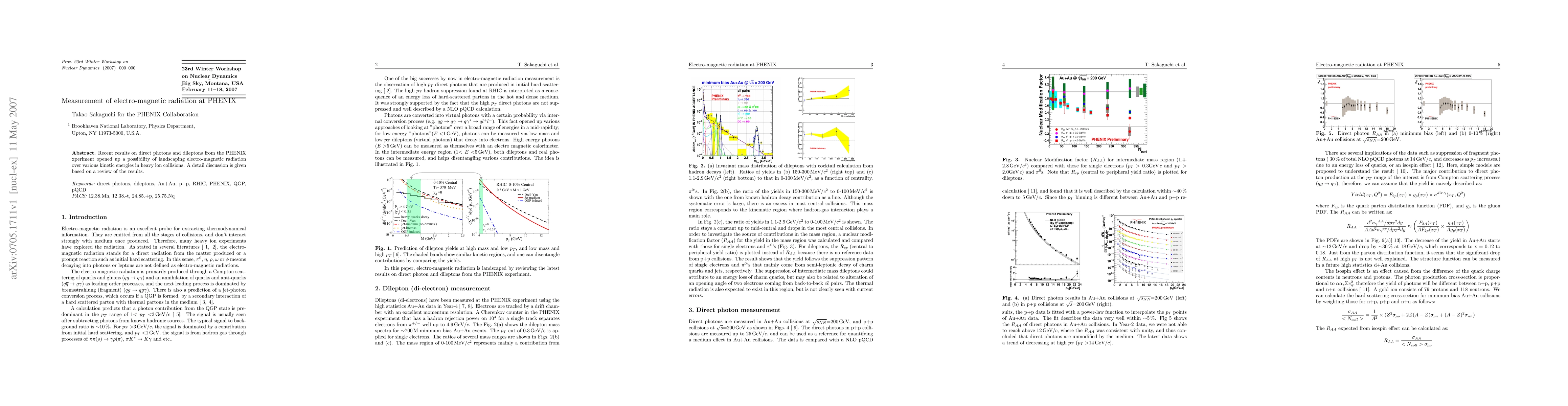 Summary: The PHENIX experiment has measured electro-magnetic radiation in heavy ion collisions, providing insights into direct photons and dileptons across various kinetic energies, contributing to a deeper understanding of electromagnetic processes in these collisions.