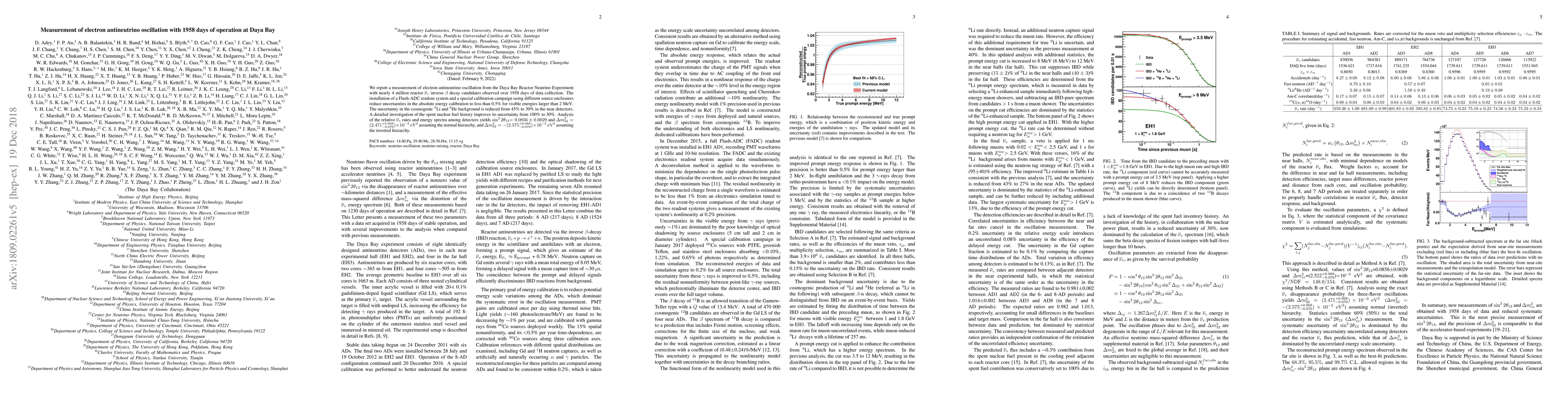 We report a measurement of electron antineutrino oscillation from the Daya Bay Reactor Neutrino Experiment with nearly 4 million reactor $\overline{\nu}_{e}$ inverse beta decay candidates observed over 1958 days of data collection. The installation of a Flash-ADC readout system and a special calibration campaign using different source enclosures reduce uncertainties in the absolute energy calibration to less than 0.5% for visible energies larger than 2 MeV. The uncertainty in the cosmogenic $^9$Li and $^8$He background is reduced from 45% to 30% in the near detectors. A detailed investigation of the spent nuclear fuel history improves its uncertainty from 100% to 30%. Analysis of the relative $\overline{\nu}_{e}$ rates and energy spectra among detectors yields $\sin^{2}2\theta_{13} = 0.0856\pm 0.0029$ and $\Delta m^2_{32}=(2.471^{+0.068}_{-0.070})\times 10^{-3}~\mathrm{eV}^2$ assuming the normal hierarchy, and $\Delta m^2_{32}=-(2.575^{+0.068}_{-0.070})\times 10^{-3}~\mathrm{eV}^2$ assuming the inverted hierarchy.