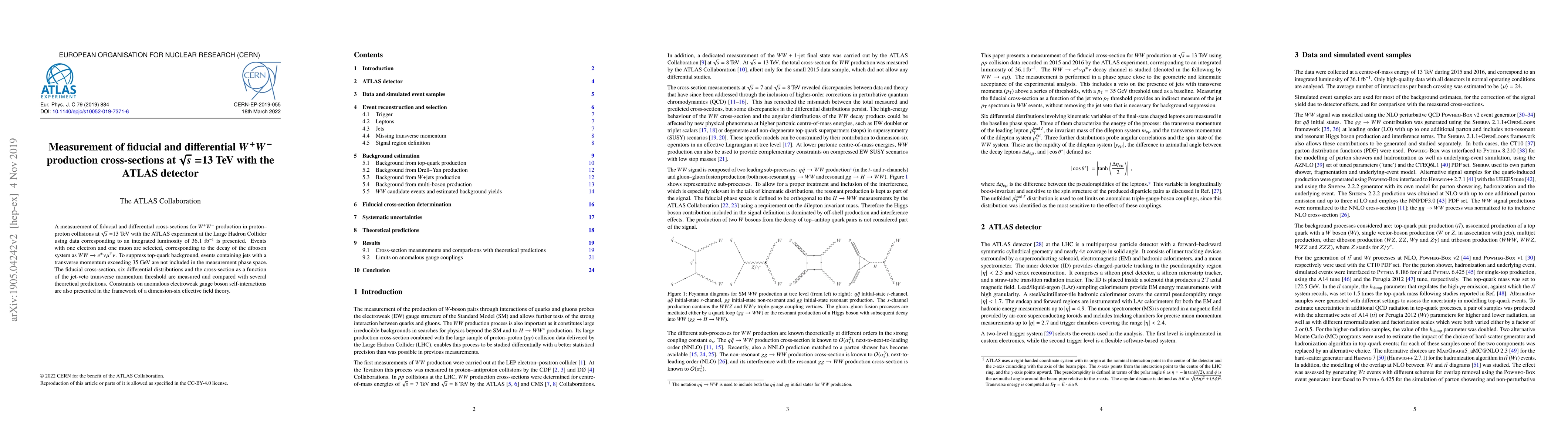 This paper measures fiducial and differential cross-sections for $W^+W^-$ production in proton-proton collisions at 13 TeV using the ATLAS detector, analyzing data with an integrated luminosity of 36.1 fb$^{-1}$. The study focuses on events with one electron and one muon, excluding top-quark background, and compares results with theoretical predictions and sets constraints on anomalous electroweak gauge boson interactions.