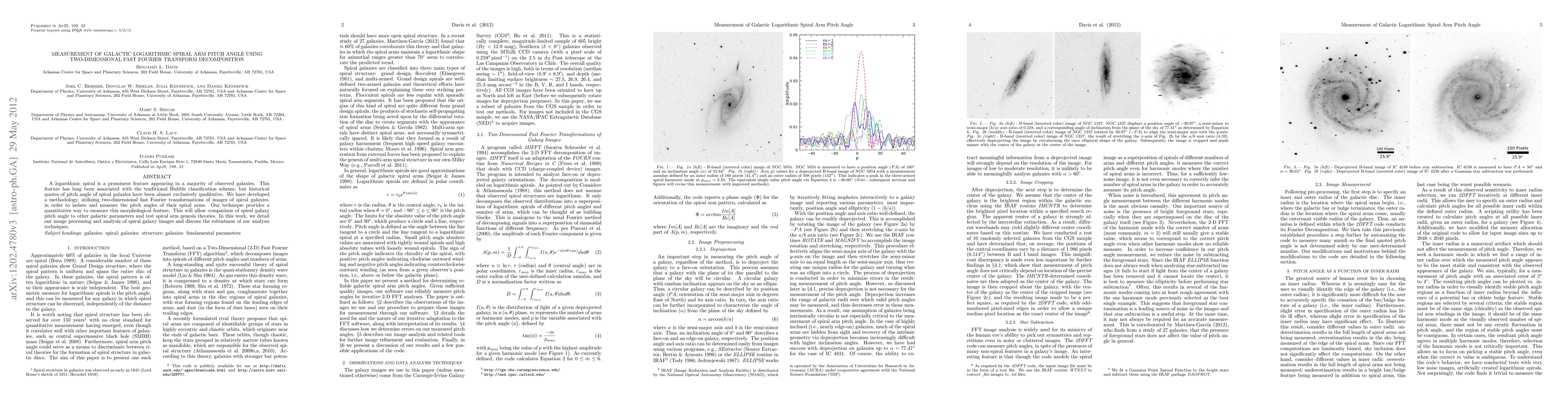 A logarithmic spiral is a prominent feature appearing in a majority of observed galaxies. This feature has long been associated with the traditional Hubble classification scheme, but historical quotes of pitch angle of spiral galaxies have been almost exclusively qualitative. We have developed a methodology, utilizing two-dimensional fast Fourier transformations of images of spiral galaxies, in order to isolate and measure the pitch angles of their spiral arms. Our technique provides a quantitative way to measure this morphological feature. This will allow comparison of spiral galaxy pitch angle to other galactic parameters and test spiral arm genesis theories. In this work, we detail our image processing and analysis of spiral galaxy images and discuss the robustness of our analysis techniques.