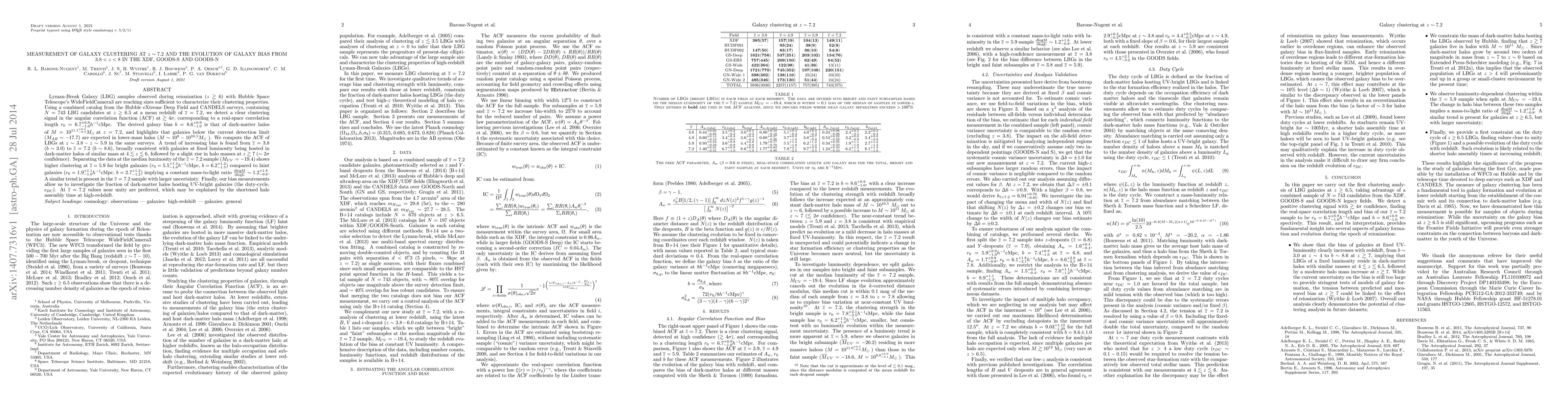 LBGs at $z\sim3.8-z\sim5.9$ in the same surveys. A trend of increasing bias is