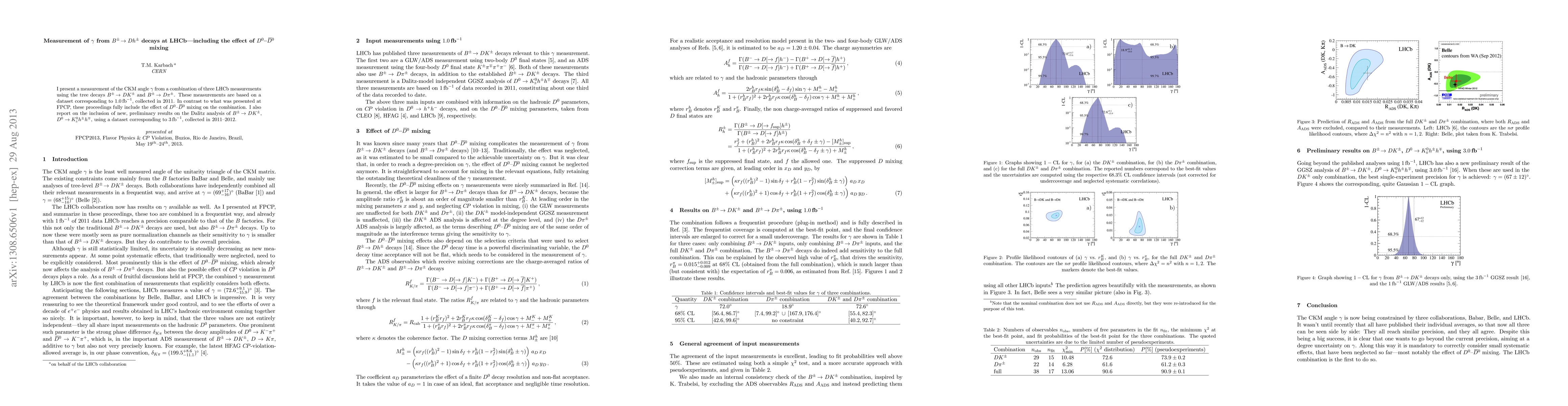 This paper measures the CKM angle gamma from B->Dh decays at LHCb, incorporating the effect of D0-D0bar mixing, based on a 1.0fb-1 dataset from 2011. It also reports preliminary results from a Dalitz analysis of B->DK, D->KShh, using a larger dataset from 2011-2012.