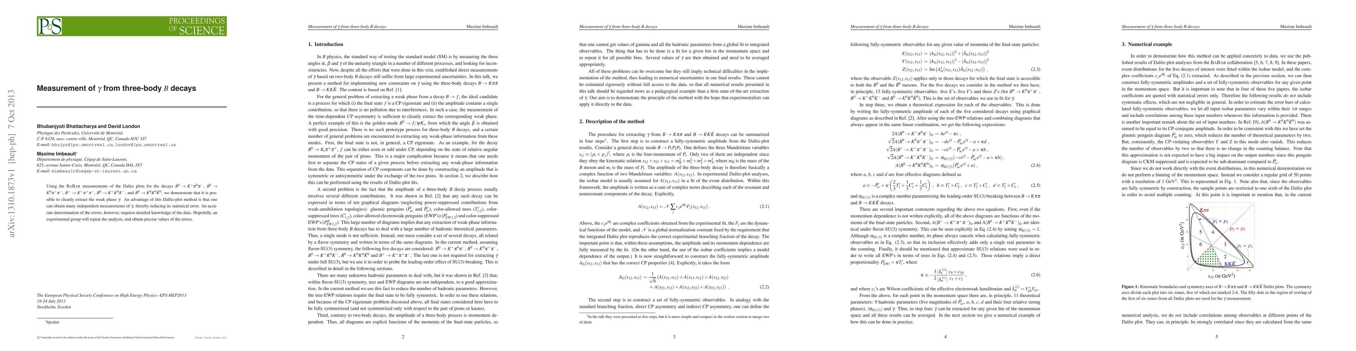 Researchers extracted the weak phase η from three-body B decays using Dalitz plots, obtaining multiple independent measurements that reduce its statistical error.