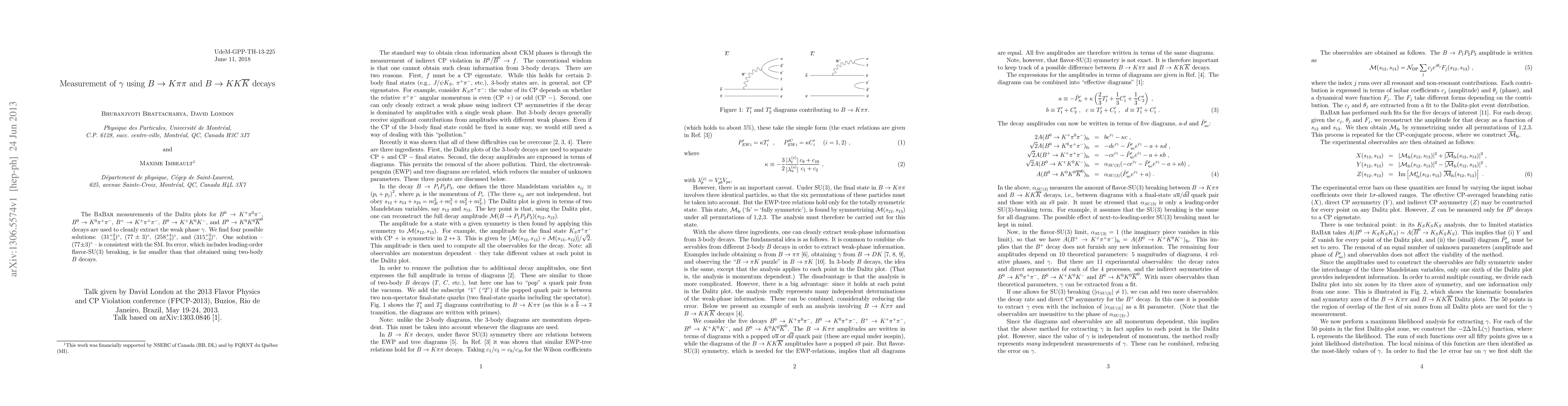 This study demonstrates a theoretically clean method for extracting weak phase information from three-body B decays, potentially providing a more precise measurement of gamma than the traditional two-body method, which has a larger error (66±12°).