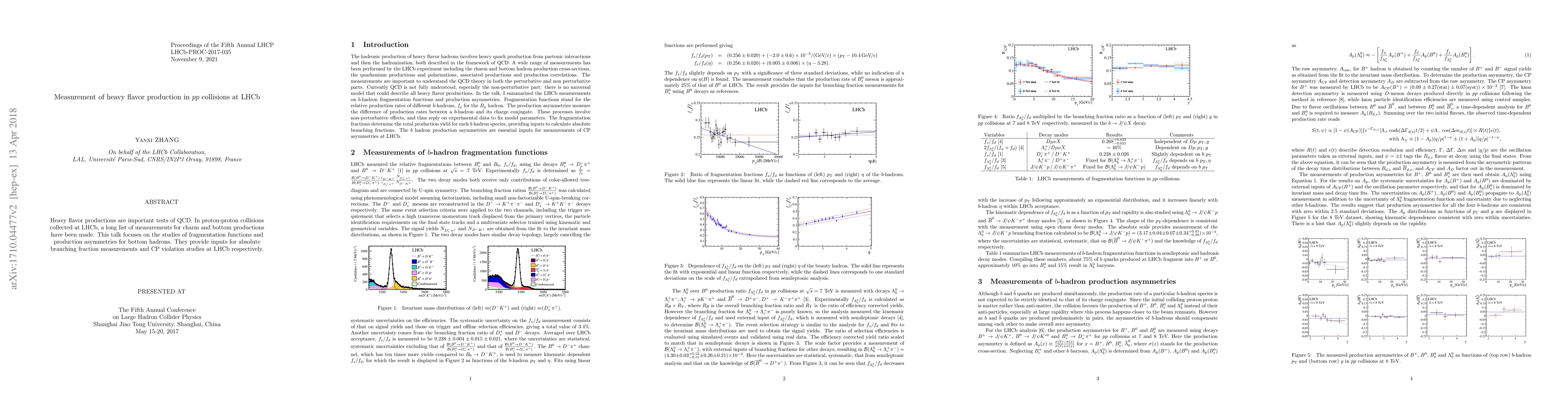 This paper reports on measurements of heavy flavor production in proton-proton collisions at LHCb, focusing on fragmentation functions and production asymmetries for bottom hadrons. These findings contribute to absolute branching fraction measurements and CP violation studies.