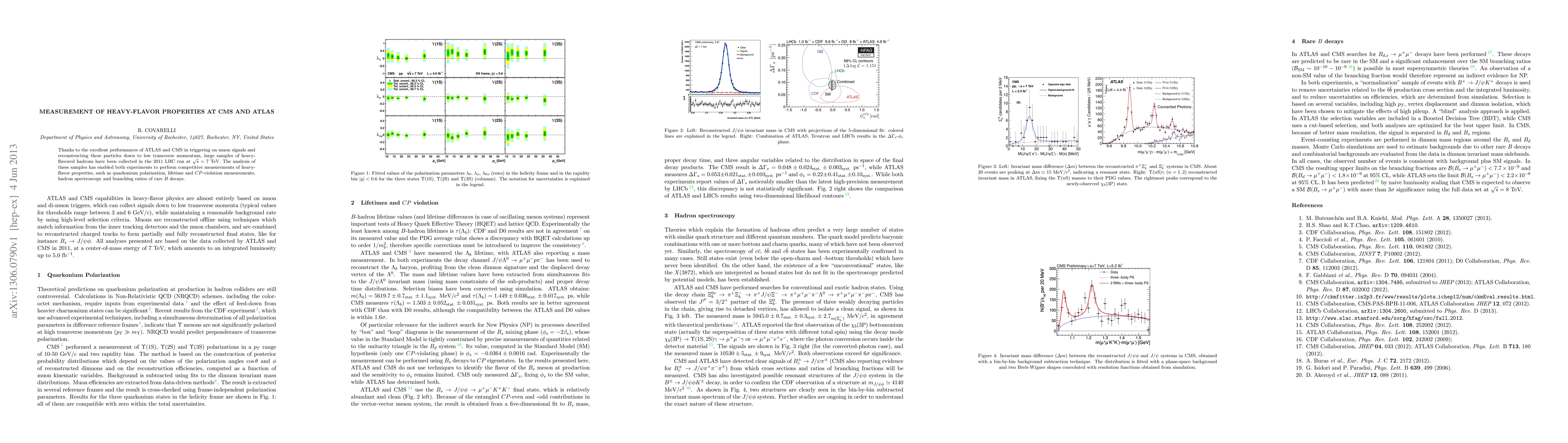This paper reports on the measurements of heavy-flavor properties, including quarkonium polarization, lifetime, CP-violation, hadron spectroscopy, and rare B decays, using large samples of heavy-flavored hadrons collected by ATLAS and CMS at the LHC in 2011. Both experiments achieved competitive results due to their efficient muon detection and reconstruction capabilities.