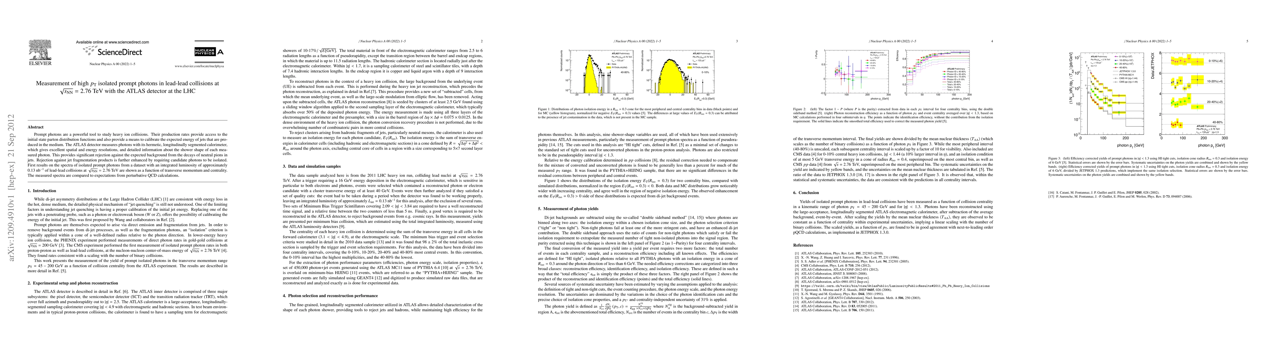 This paper reports on the measurement of high transverse momentum isolated prompt photons in lead-lead collisions at 2.76 TeV using the ATLAS detector at the LHC. The results provide insights into initial state parton distribution functions and jet calibration, with comparisons to perturbative QCD calculations.