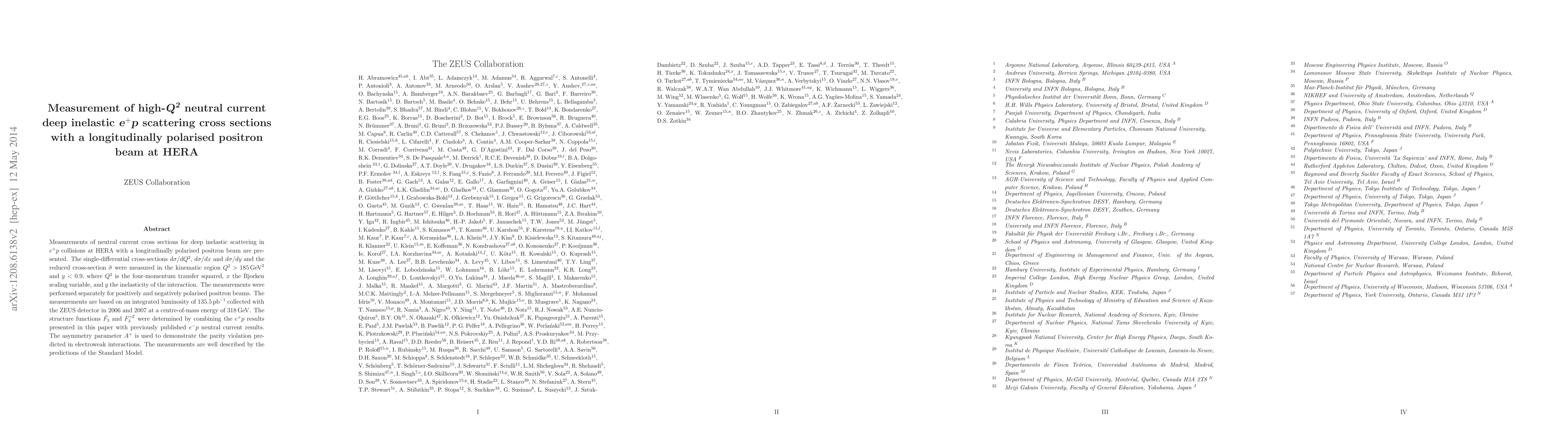 This paper reports measurements of neutral current cross sections in high-Q2 deep inelastic e+p scattering using a longitudinally polarised positron beam at HERA, revealing detailed structure functions and demonstrating parity violation in electroweak interactions, consistent with Standard Model predictions.