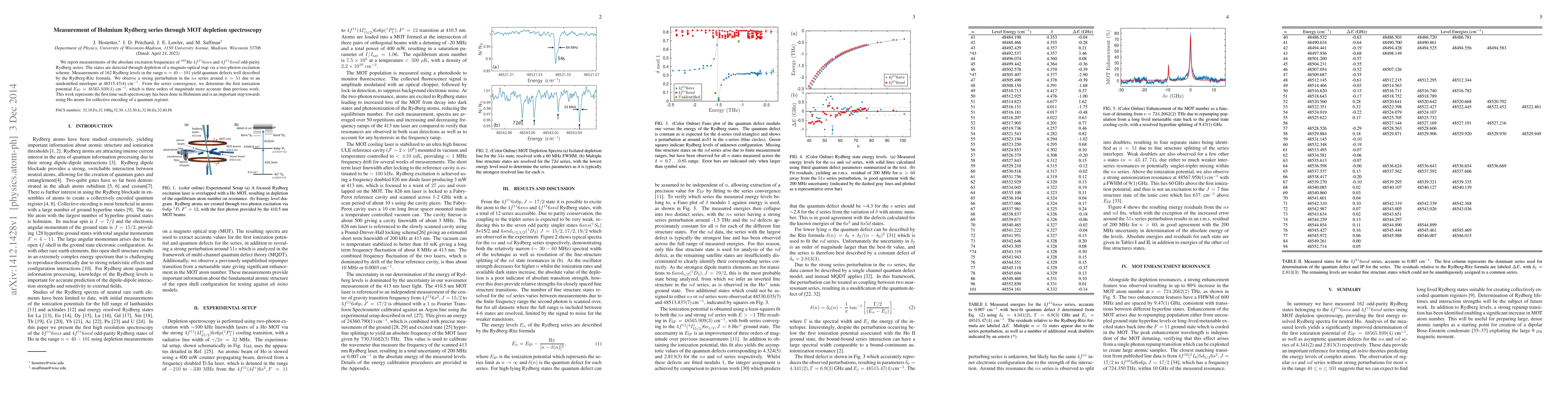 We report measurements of the absolute excitation frequencies of $^{165}$Ho $4f^{11}6sns$ and $4f^{11}6snd$ odd-parity Rydberg series. The states are detected through depletion of a magneto-optical trap via a two-photon excitation scheme. Measurements of 162 Rydberg levels in the range $n=40-101$ yield quantum defects well described by the Rydberg-Ritz formula. We observe a strong perturbation in the $ns$ series around $n=51$ due to an unidentified interloper at 48515.47(4) cm$^{-1}$. From the series convergence, we determine the first ionization potential $E_\mathrm{IP}=48565.939(4)$ cm$^{-1}$, which is three orders of magnitude more accurate than previous work. This work represents the first time such spectroscopy has been done in Holmium and is an important step towards using Ho atoms for collective encoding of a quantum register.