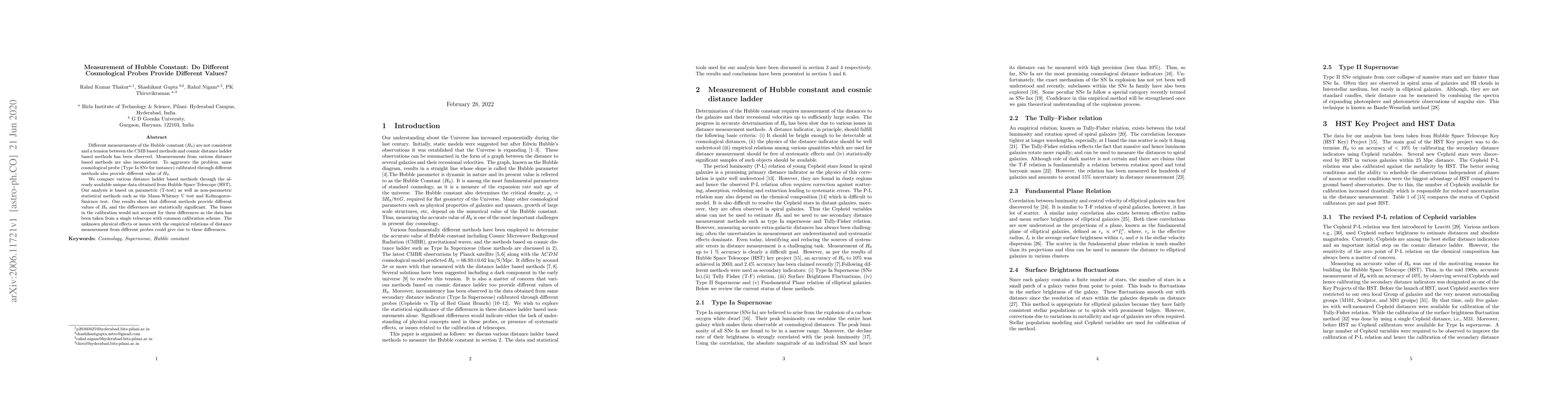 Different measurements of the Hubble constant ($H_{0}$) are not consistent and a tension between the CMB based methods and cosmic distance ladder based methods has been observed. Measurements from various distance based methods are also inconsistent. To aggravate the problem, same cosmological probe (Type Ia SNe for instance) calibrated through different methods also provide different value of $H_{0}$. We compare various distance ladder based methods through the already available unique data obtained from Hubble Space Telescope (HST). Our analysis is based on parametric (T-test) as well as non-parametric statistical methods such as the Mann-Whitney U test and Kolmogorov-Smirnov test. Our results show that different methods provide different values of $H_0$ and the differences are statistically significant. The biases in the calibration would not account for these differences as the data has been taken from a single telescope with common calibration scheme. The unknown physical effects or issues with the empirical relations of distance measurement from different probes could give rise to these differences.